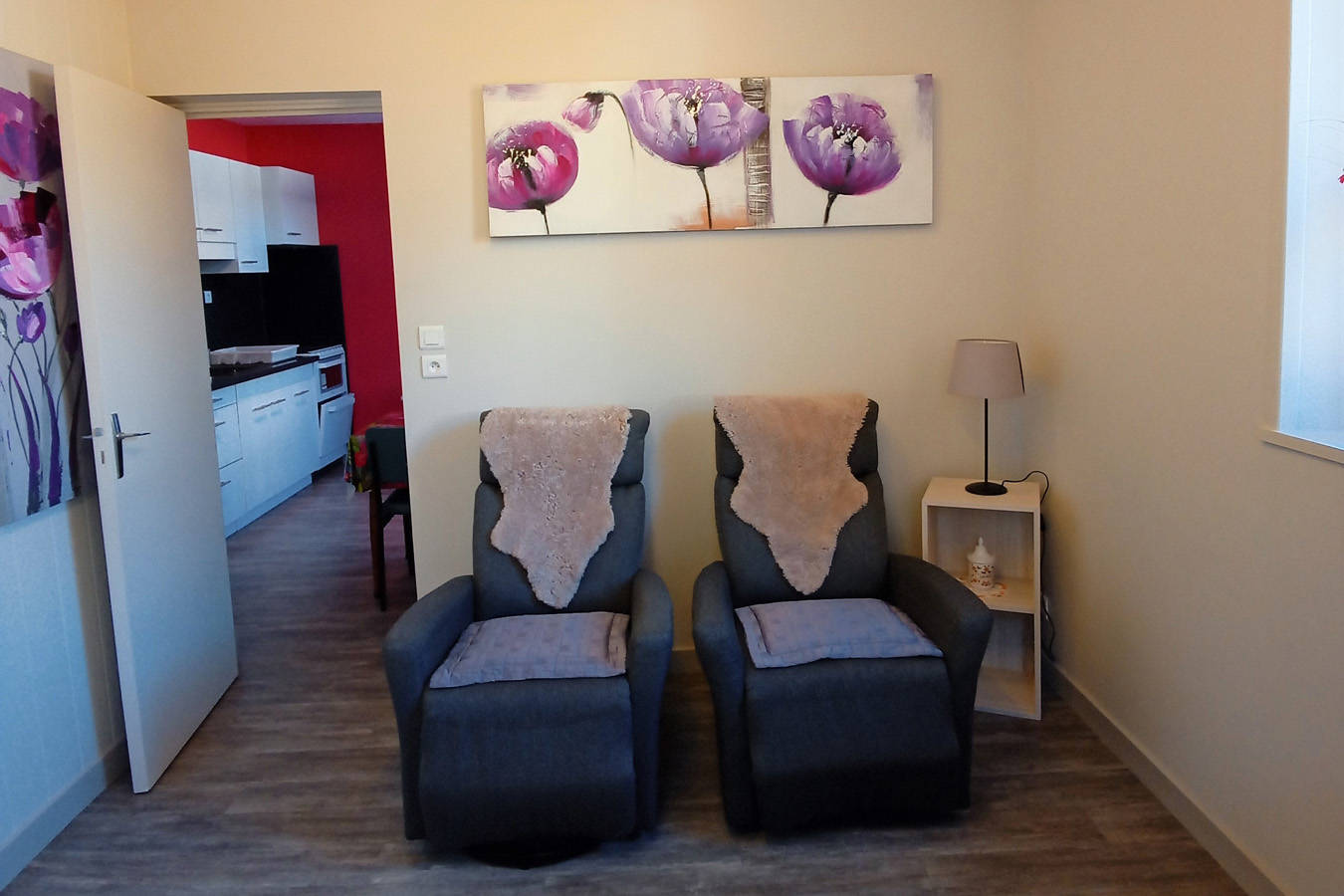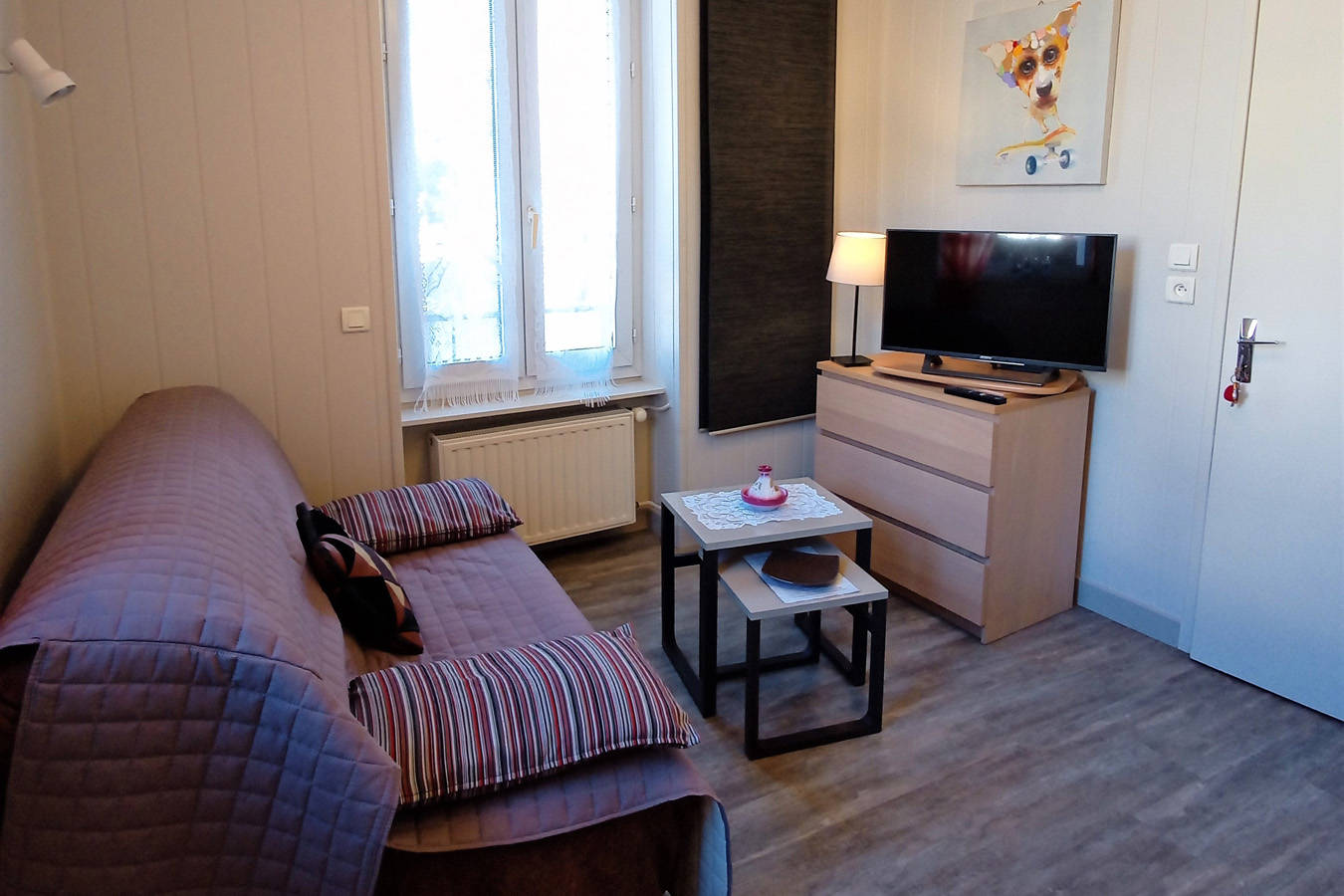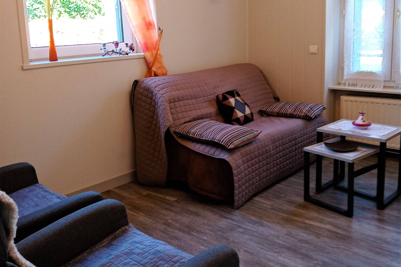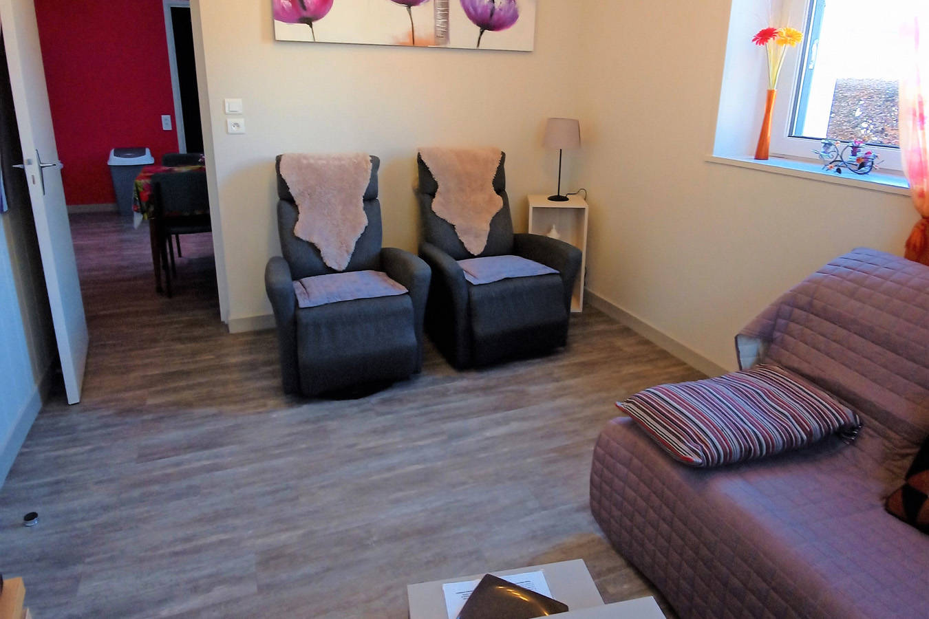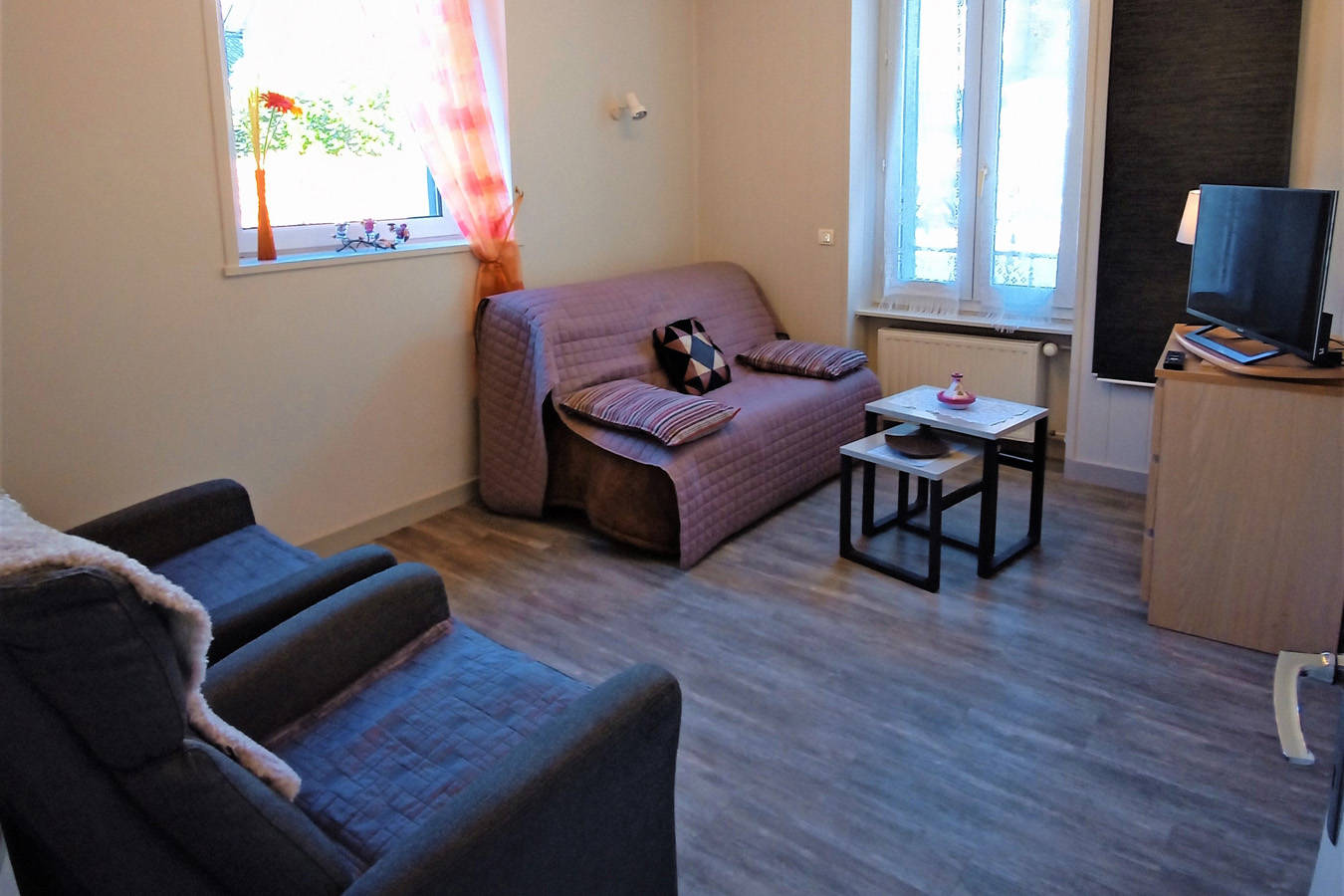 Appartement pouvant loger de 2 à 4 personnes, situé dans le parc des Marronniers de 2000 m², fleuri et arboré.