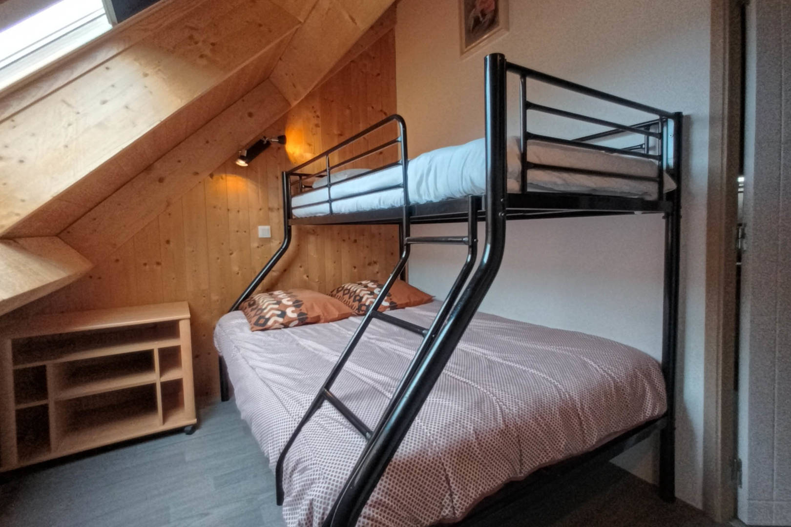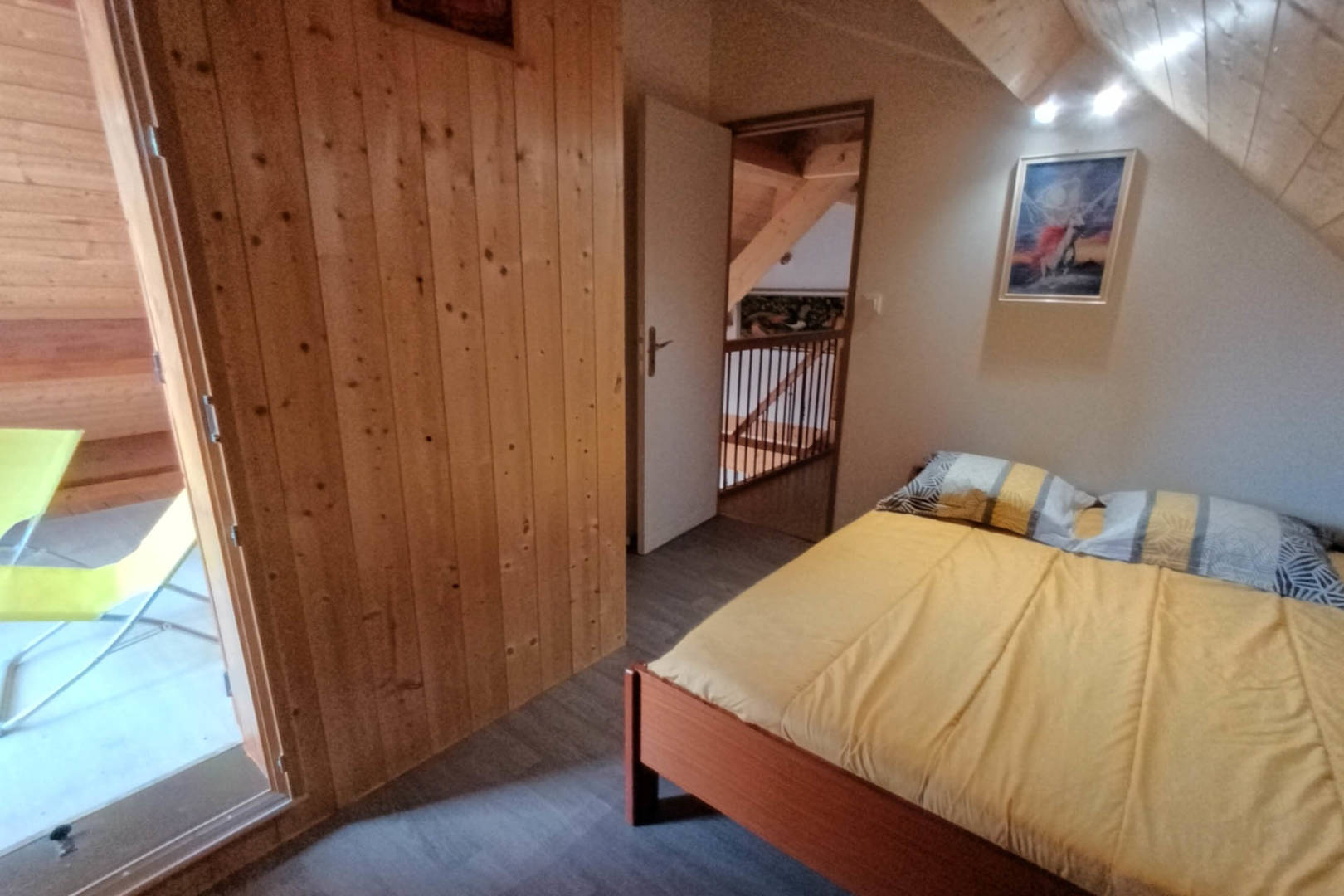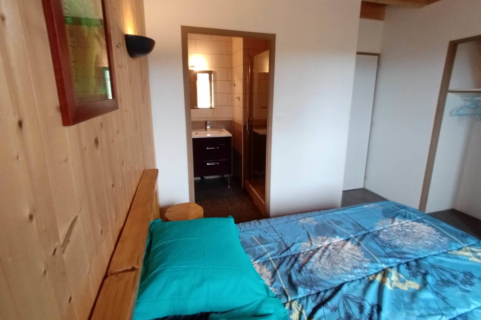 Chambre parentale de 12 m², lit 2 personnes de 140/190. Salle d’eau privative.
