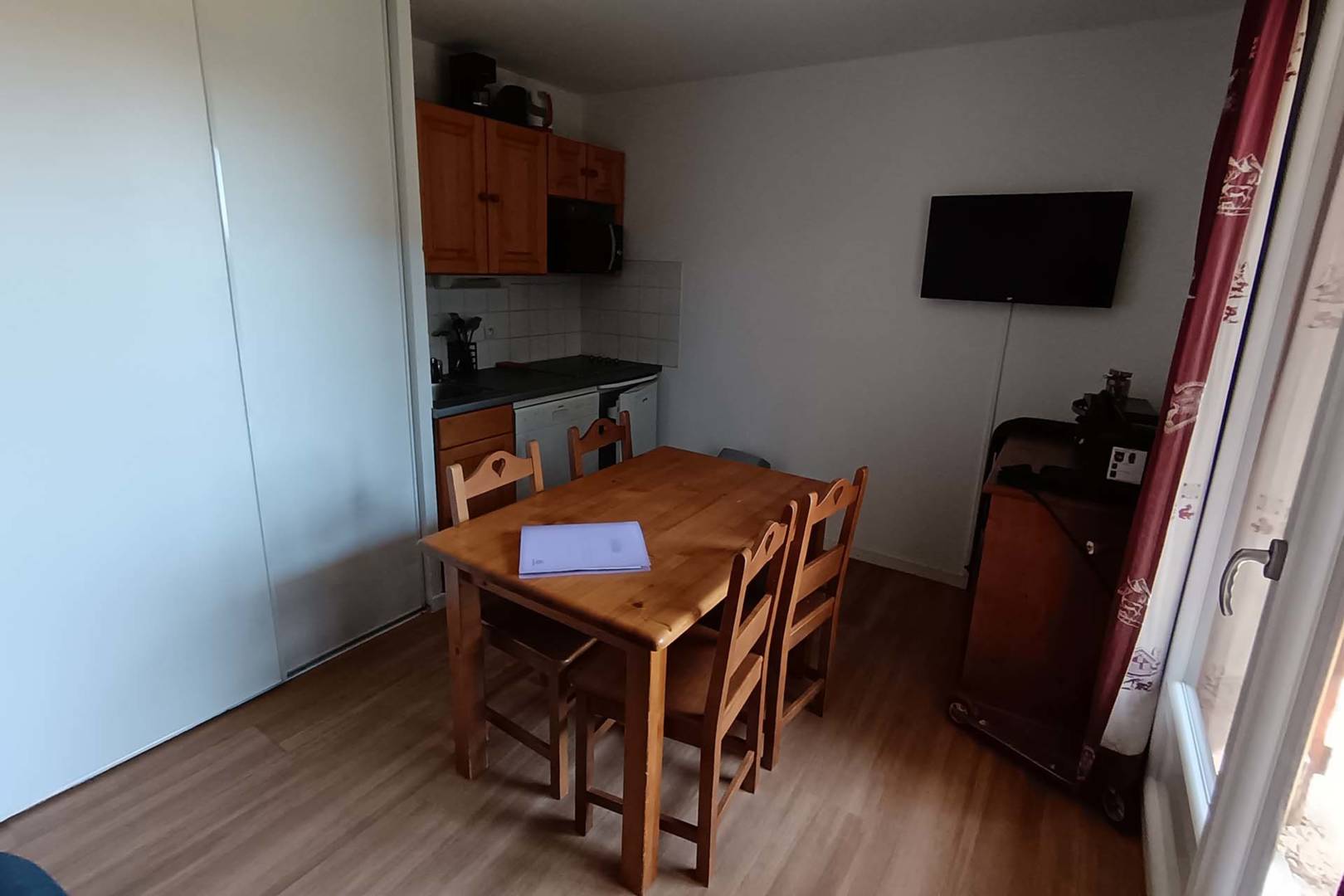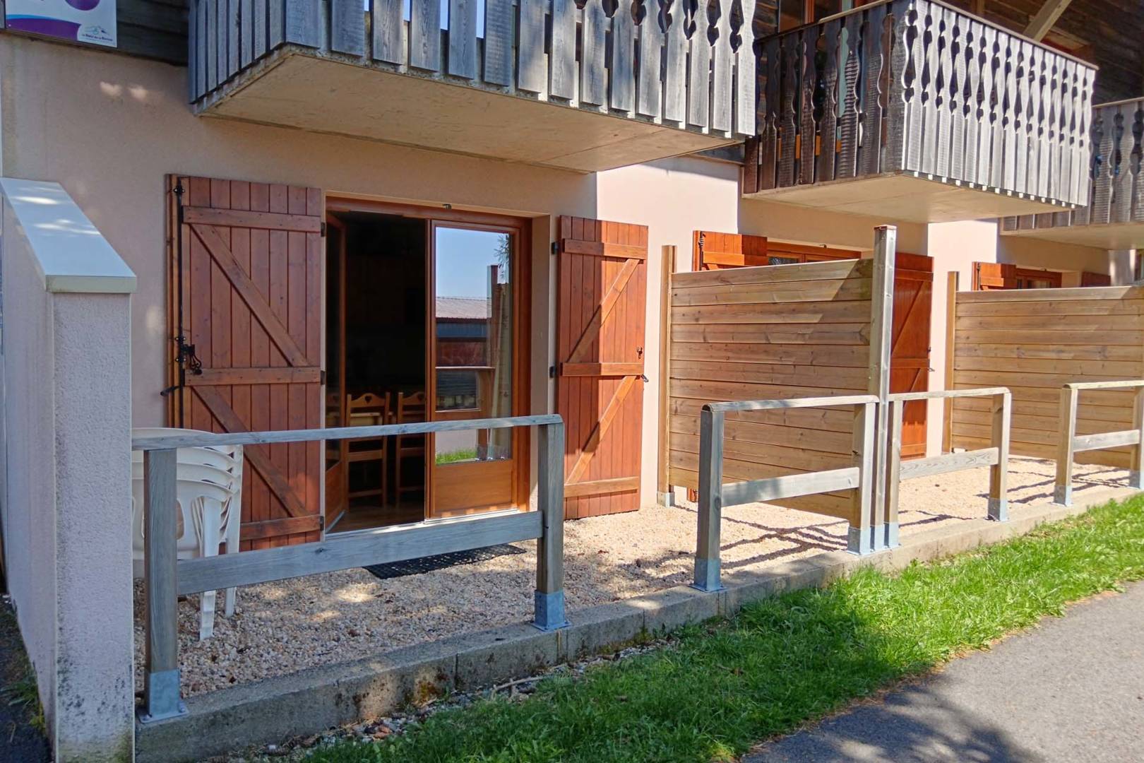 Appartement avec 1 chambre, situé en rez-de-chaussée, avec terrasse donnant sur espace vert, parfaitement équipé pour accueillir 5 personnes et 1 nourrisson.
