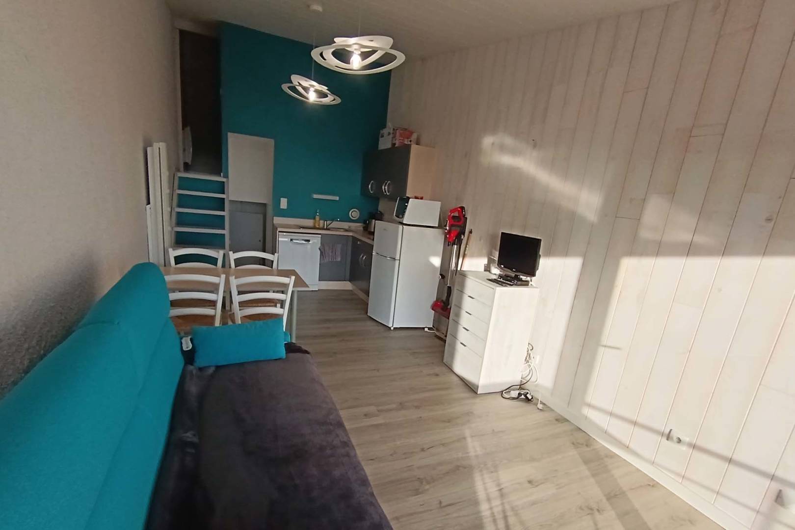 Bel appartement entièrement refait à neuf (électroménager et literie compris) en 2021, comprenant 1 chambre avec lit en 160 et convertible en 160 dans le salon. Une salle d’eau et cuisine équipée.