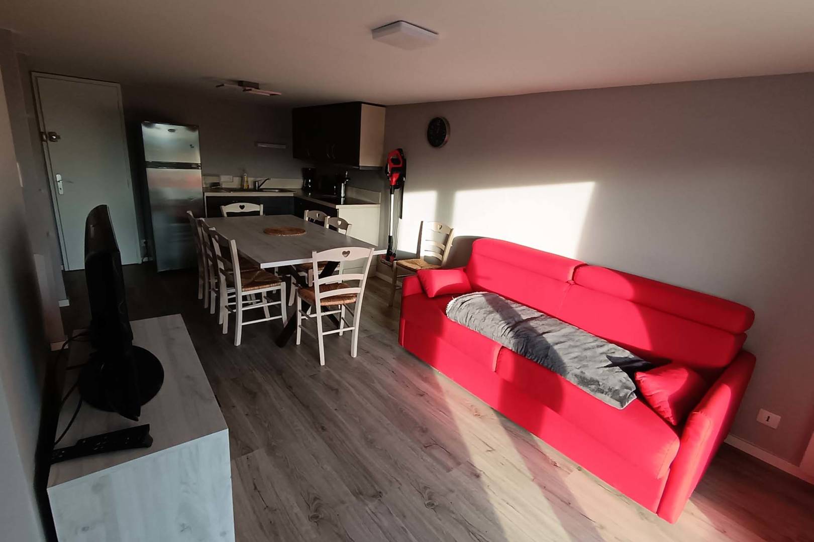Bel appartement entièrement refait à neuf (électroménager et literie compris) en 2021, comprenant 3 chambres (dont une actuellement séparée par des rideaux du salon) avec lits en 160 et convertibles en 160 dans le salon. Une salle d’eau et cuisine équipée.