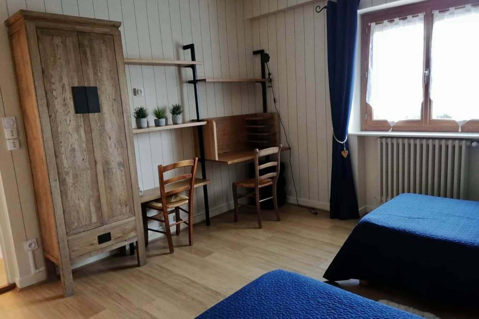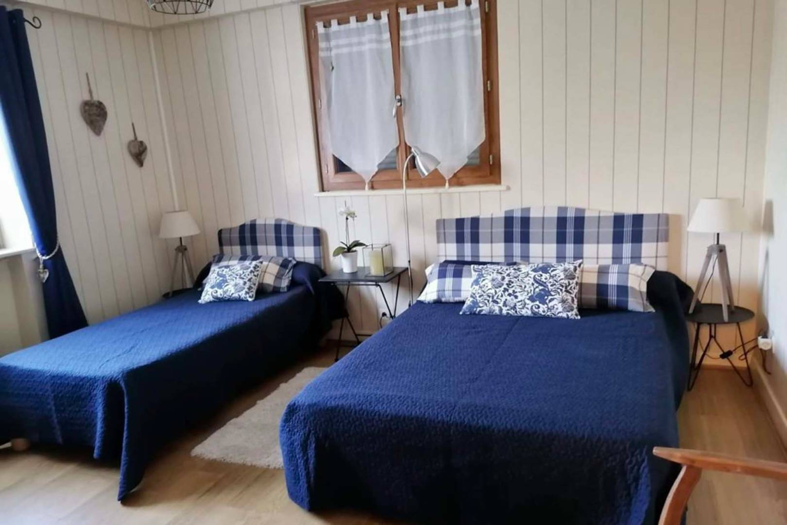 -une chambre avec un lit simple 90 et un lit double 140