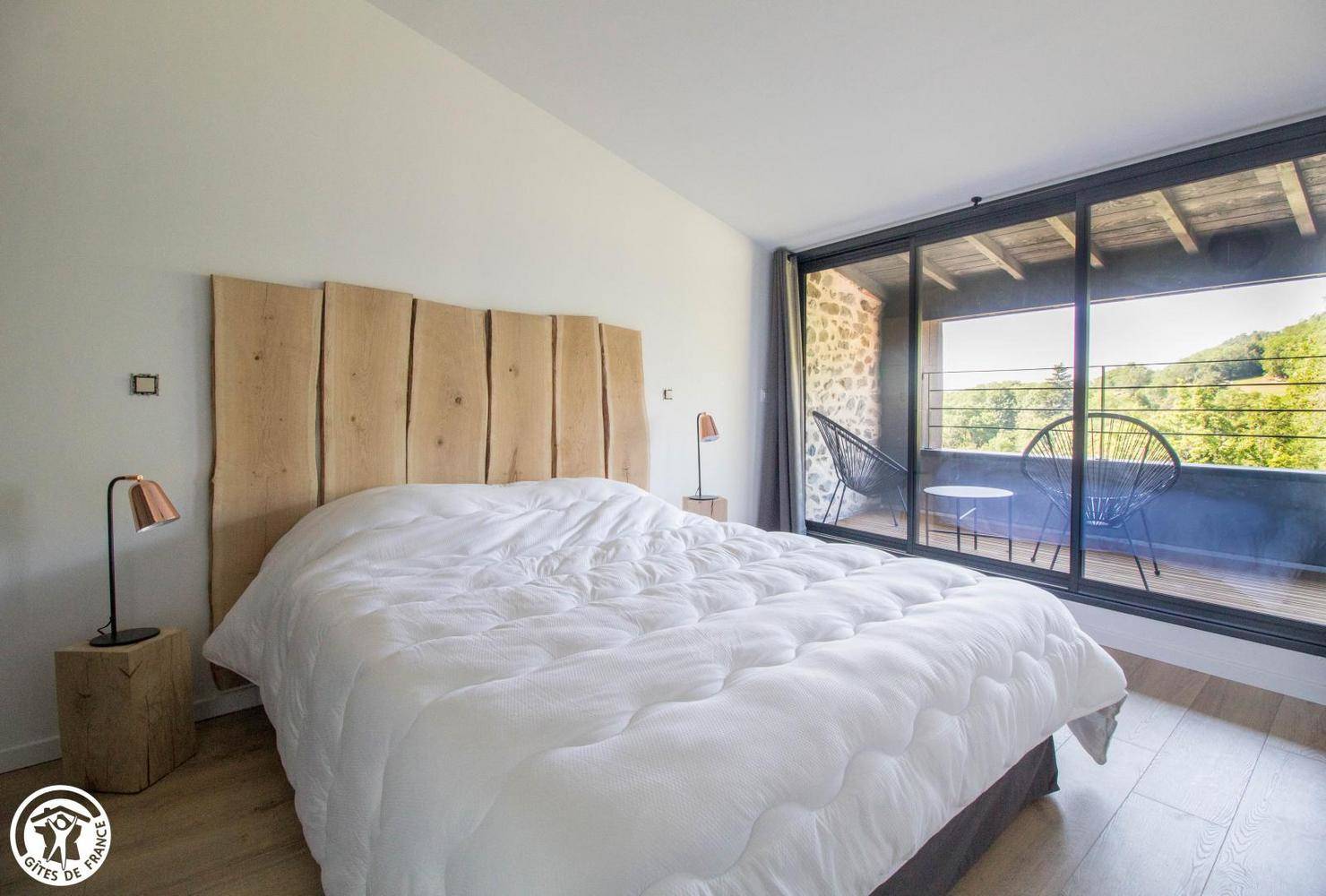 Elle se compose au rez-de-chaussée d’une spacieuse pièce à vivre baignée de lumière grâce aux nombreuses verrières donnant sur l’extérieur et sur le grand jardin d’hiver : cuisine ouverte et espace salon avec poêle à bois (ballots de bois mis à votre disposition gratuitement à votre arrivée), wc indépendant, terrasse exposée plein sud. Au premier étage : une chambre avec un lit 160 et accès à une charmante terrasse rien que pour deux, une chambre avec deux lits 90 superposés, une chambre avec deux lits 90 (pouvant être accolés), une salle d’eau et un wc indépendant. A l’étage -1 : une chambre avec un lit 140, un espace détente avec un sauna 6/8 places et une salle d’eau/wc. Vous profiterez du grand jardin d’hiver avec coin détente situé au rez-de-chaussée. WIFI. Chauffage inclus. Parking devant le gîte. De nombreux loisirs : randonnée, centre aqualudique à St Nectaire, lacs d’Aydat et Chambon pour la baignade et les sports nautiques, ski de fond au Domaine du Guéry et ski de descente à Super-Besse et au Mont-Dore. Commerces et services à St-Nectaire 10.4km et à Saint-Saturnin 7 km..