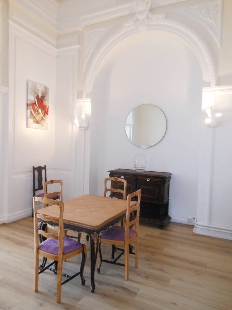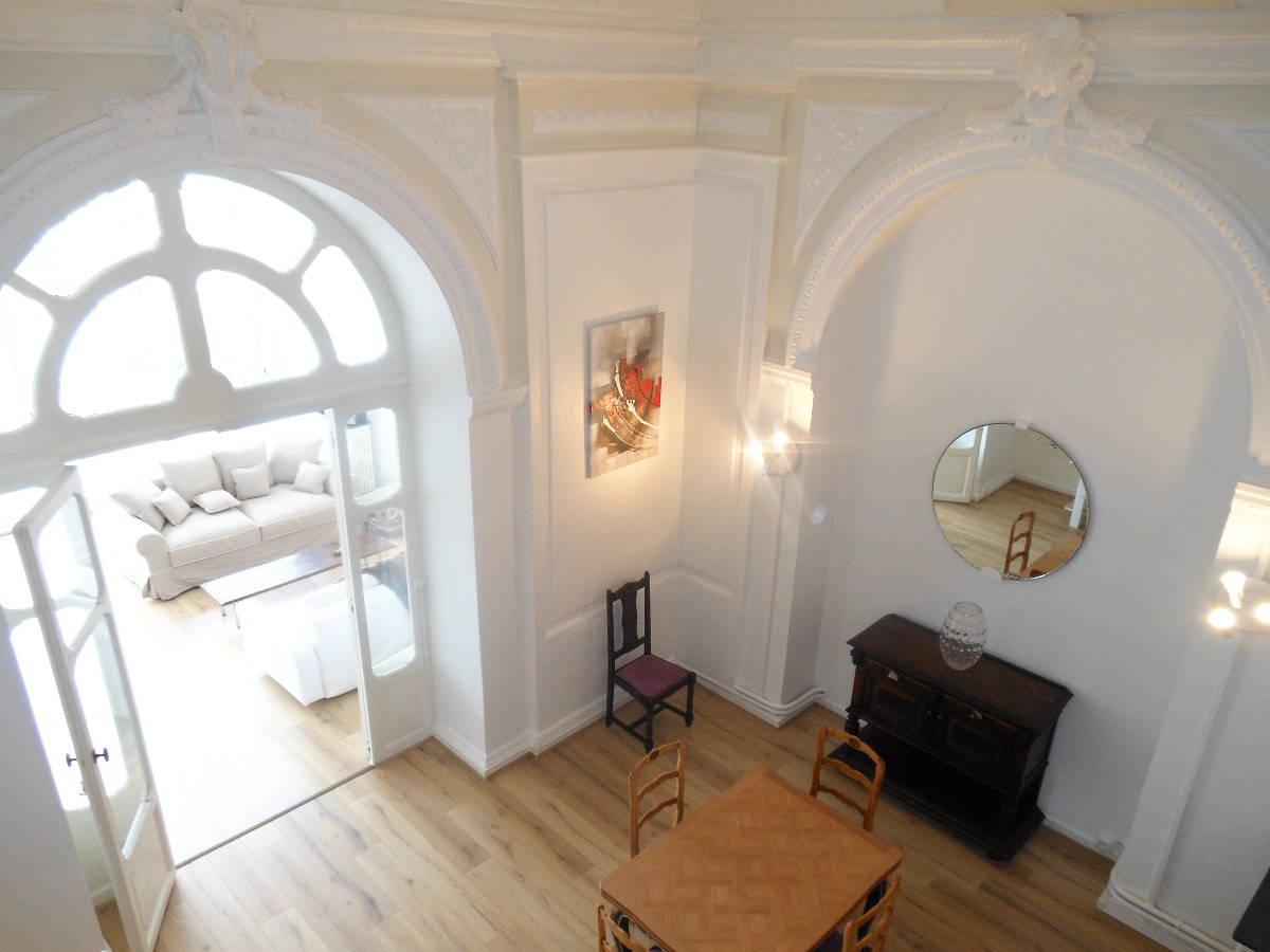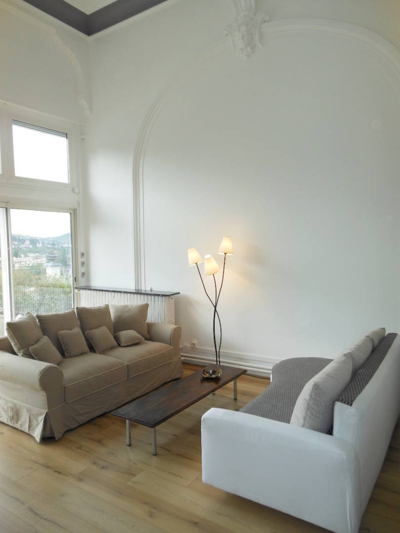 Magnifique appartement de caractère de 80 m², entièrement rénové, offrant une vue dégagée sur Royat et les monts environnants. Terrasse privative de 20m² et terrasse collective de 360m² réservée aux résidents de l’immeuble. Entrée, cuisine ouverte toute équipée donnant sur salle à manger puis sur salon/séjour avec deux canapés convertibles (140×200) dont un vrai canapé-lit. Grandes baies vitrées avec double vitrages et volets roulants électriques. Chambre en mezzanine avec lit 160×200 donnant sur une salle de bain indépendante avec baignoire et douche.
