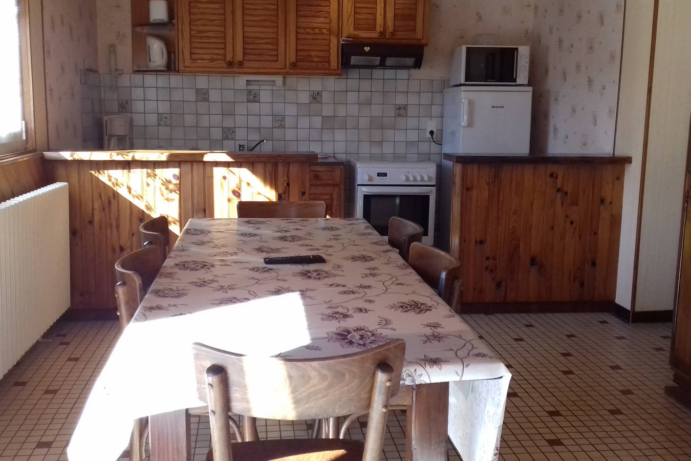 -une cuisine équipée de frigo/congélateur, gazinière avec four électrique, four micro onde, cafetière, bouilloire, grille-pain