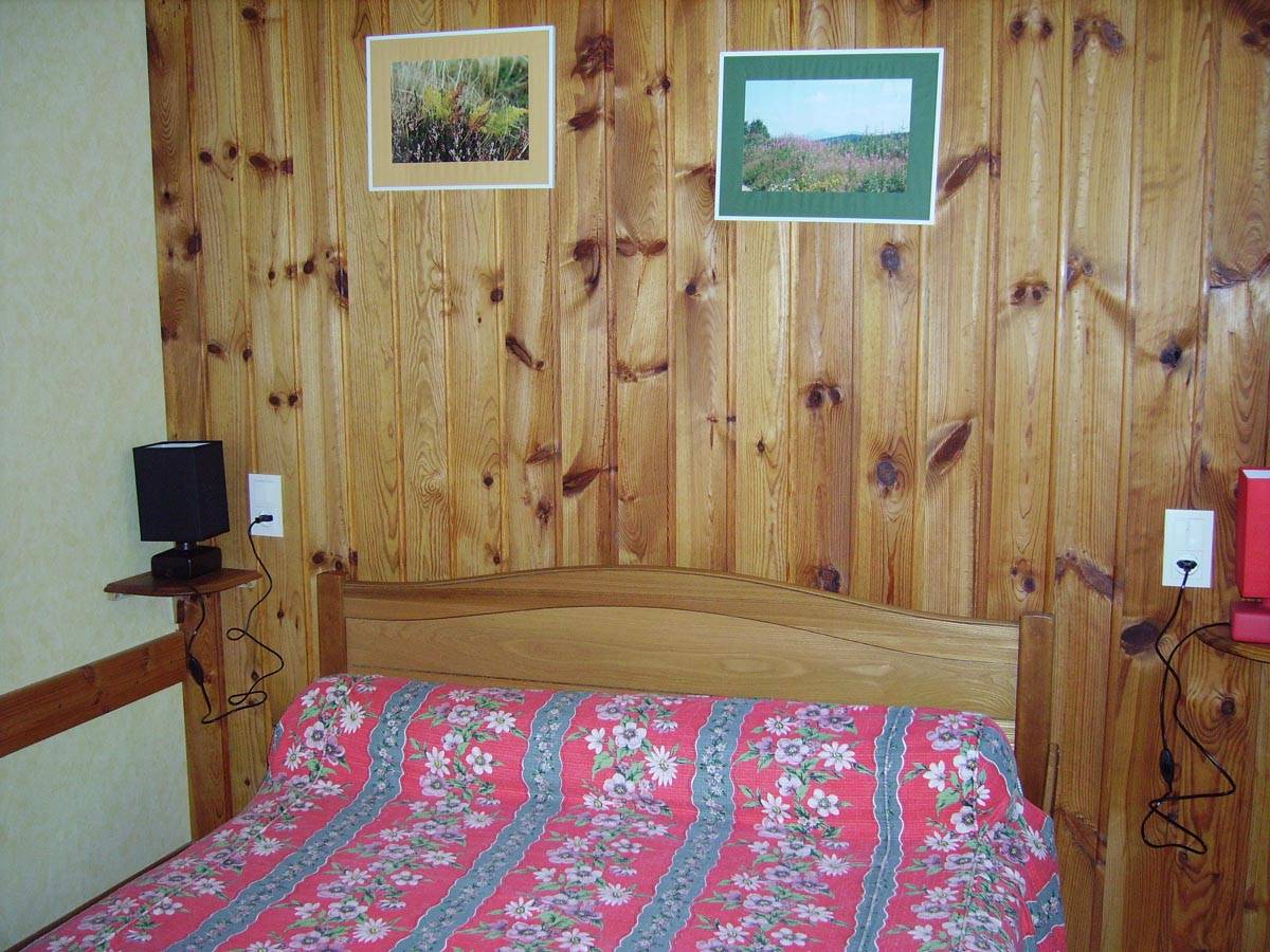 -une chambre avec un lit double, armoire (rayons et penderie)