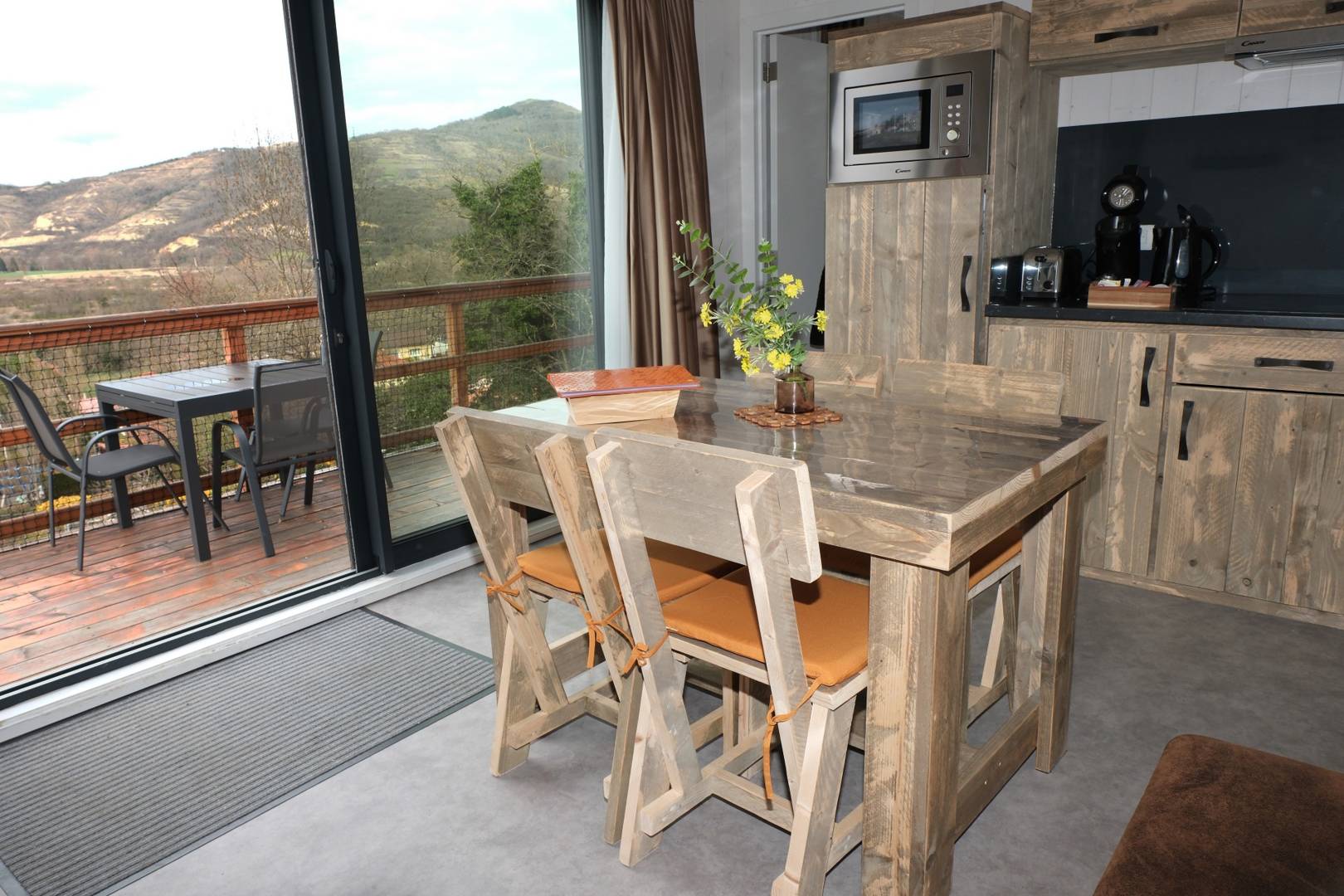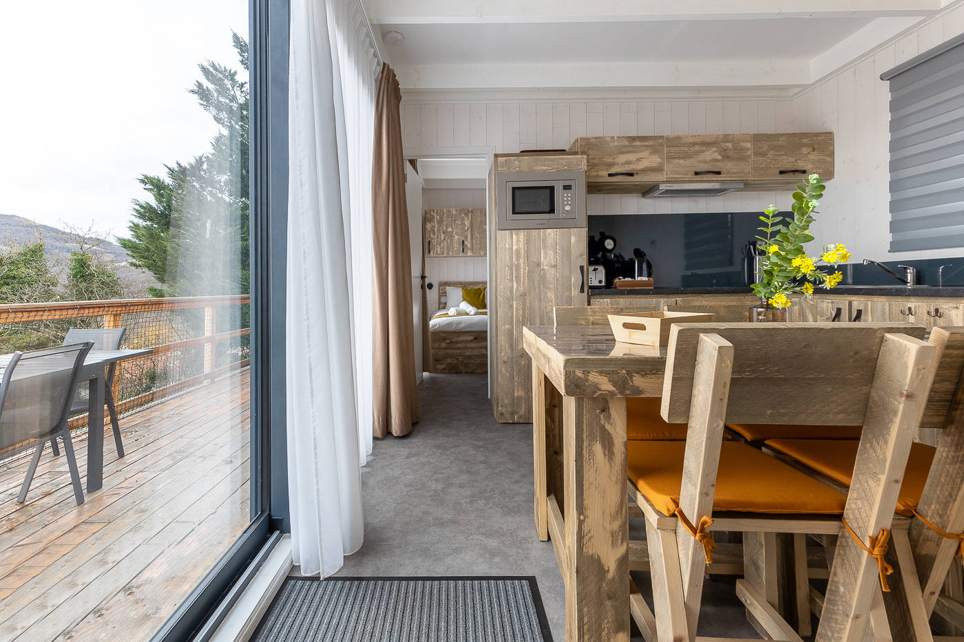 La terrasse spacieuse devient une véritable pièce supplémentaire, idéale pour partager les repas et profiter du calme du parc.