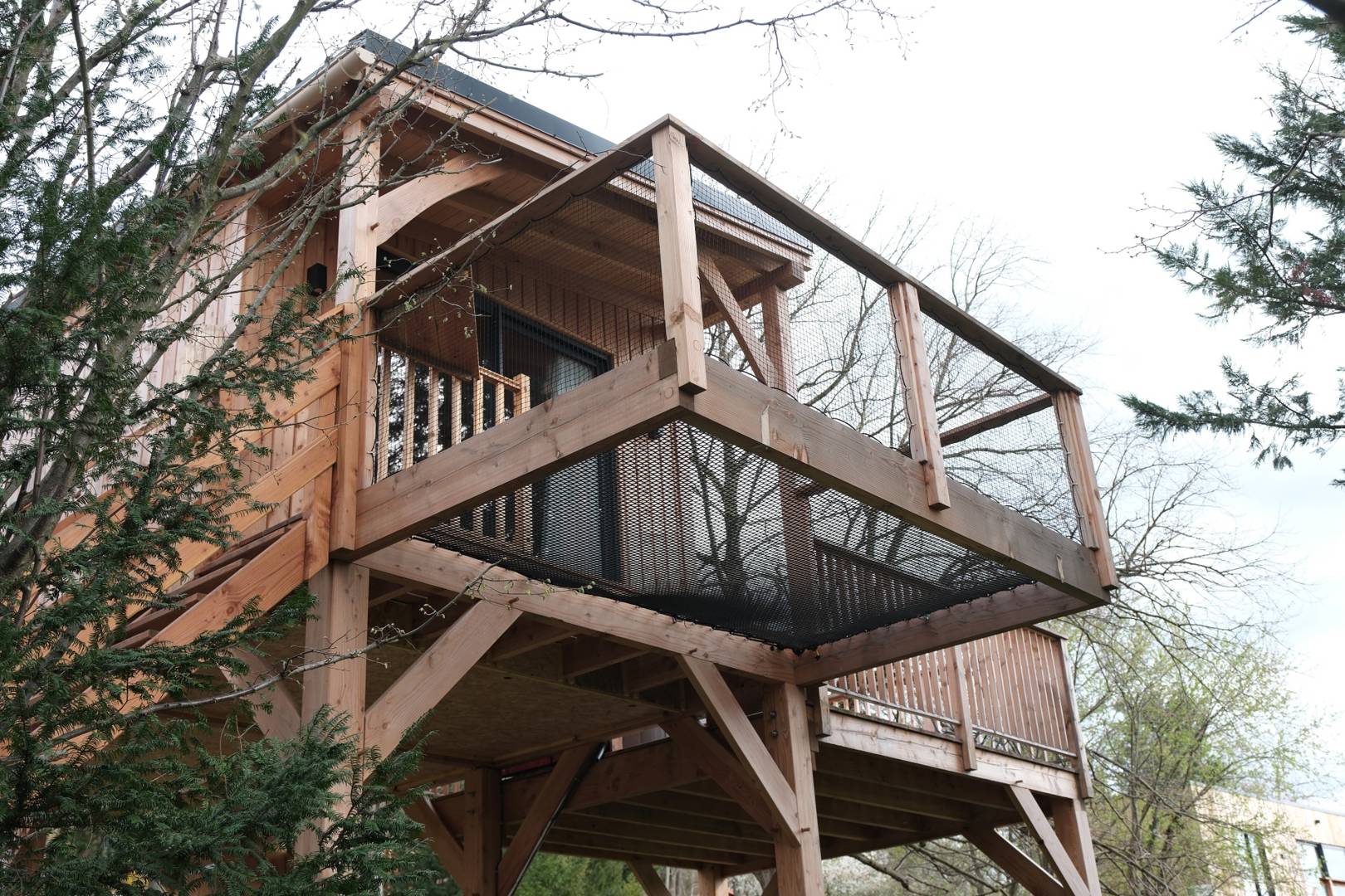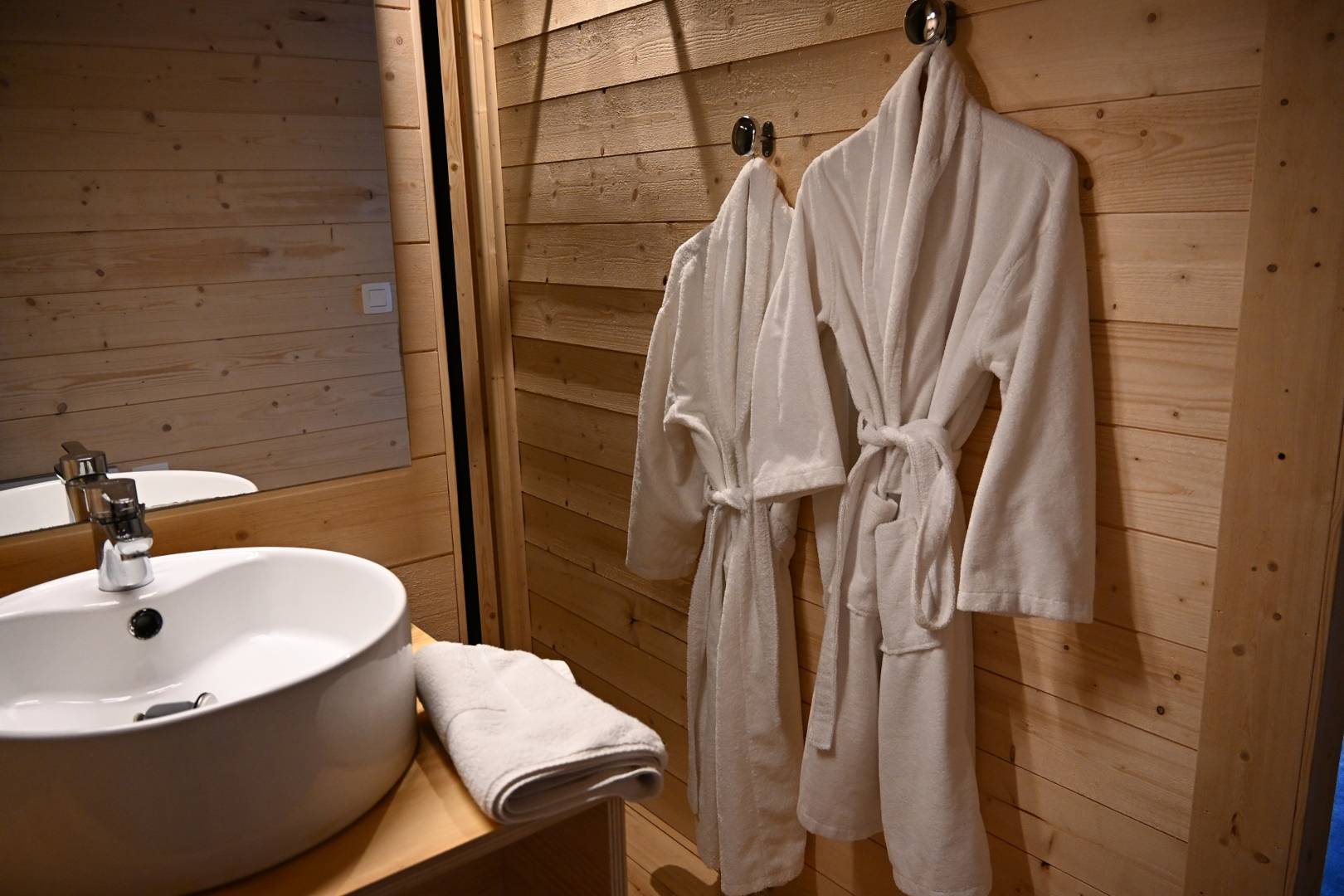 Le spa privatif en hauteur et le filet suspendu sont les atouts majeurs : ils créent une expérience sensorielle unique, entre détente et légèreté.