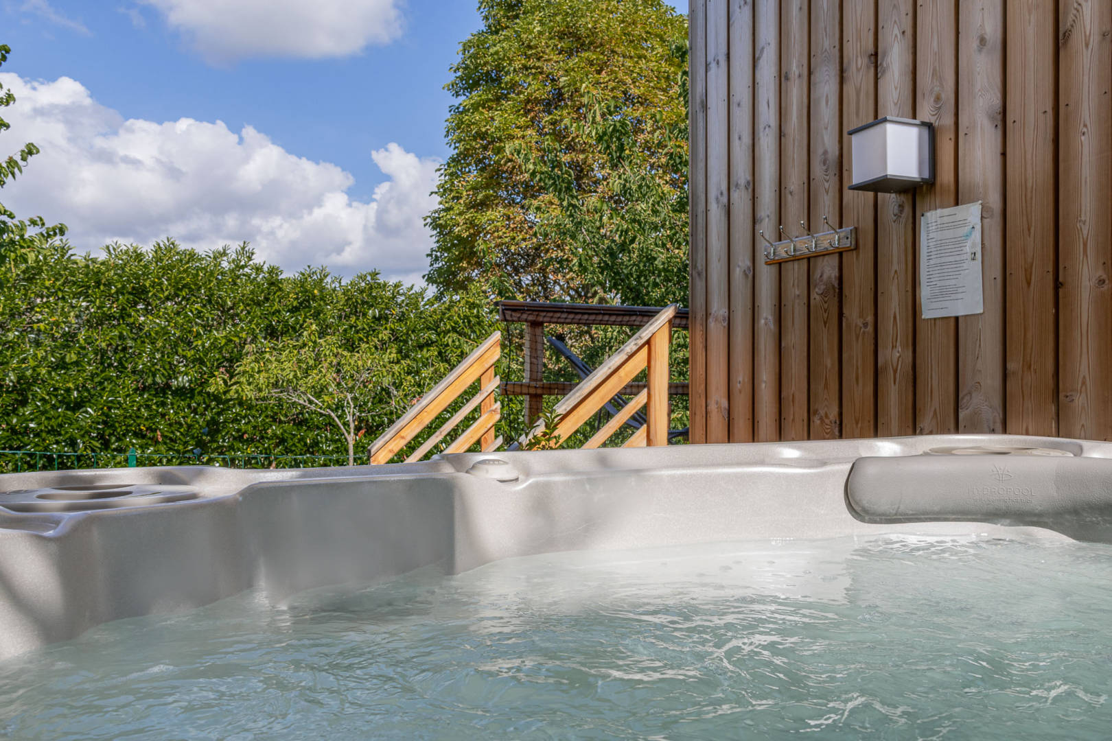 Le spa privatif 5 places constitue le grand atout du lodge : une invitation à la détente collective après une journée d’exploration.