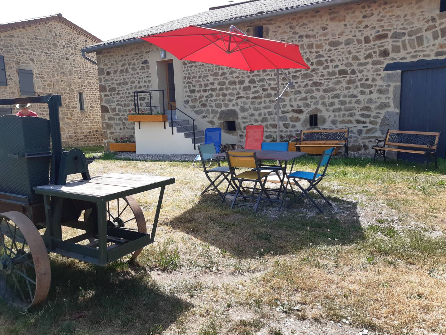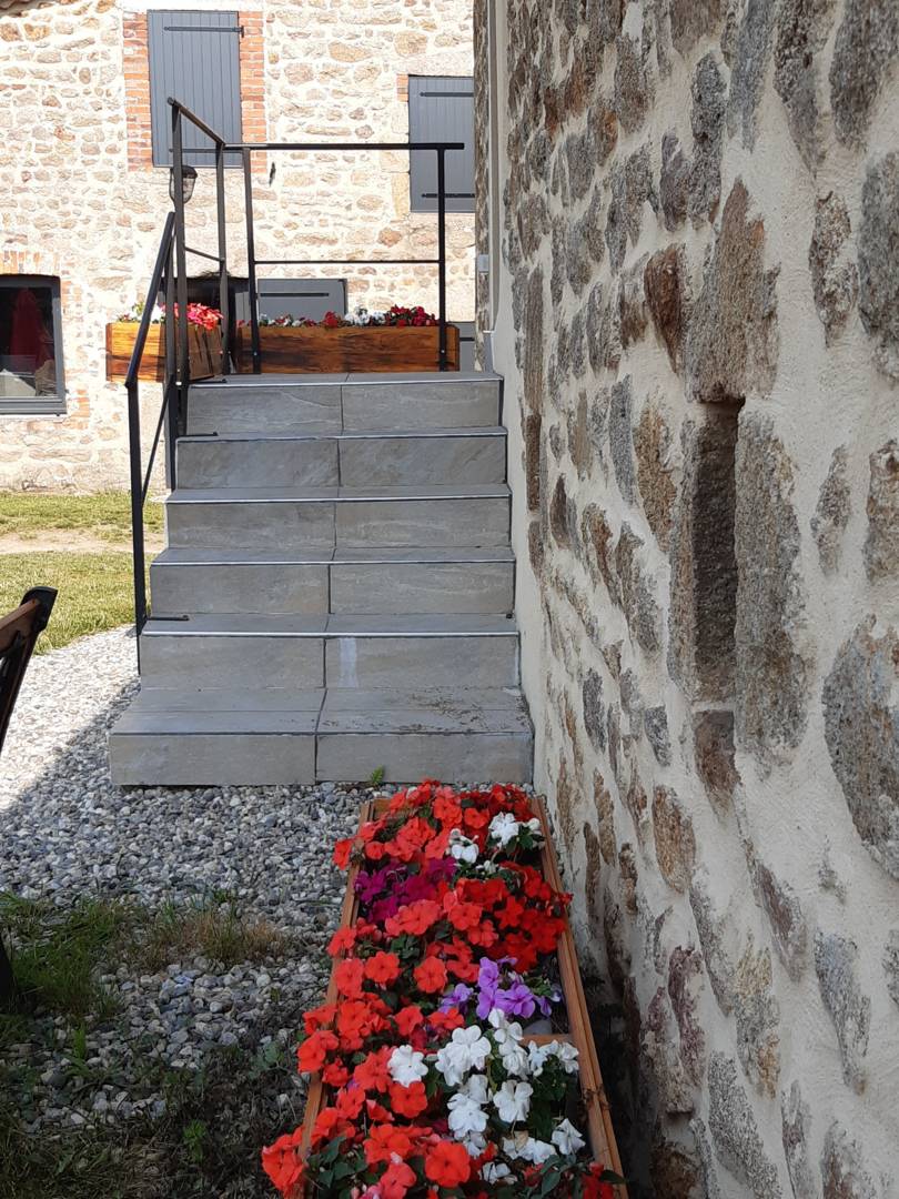 Vous accédez au logement côté jardin par un escalier avec sa rembarde fleurie.