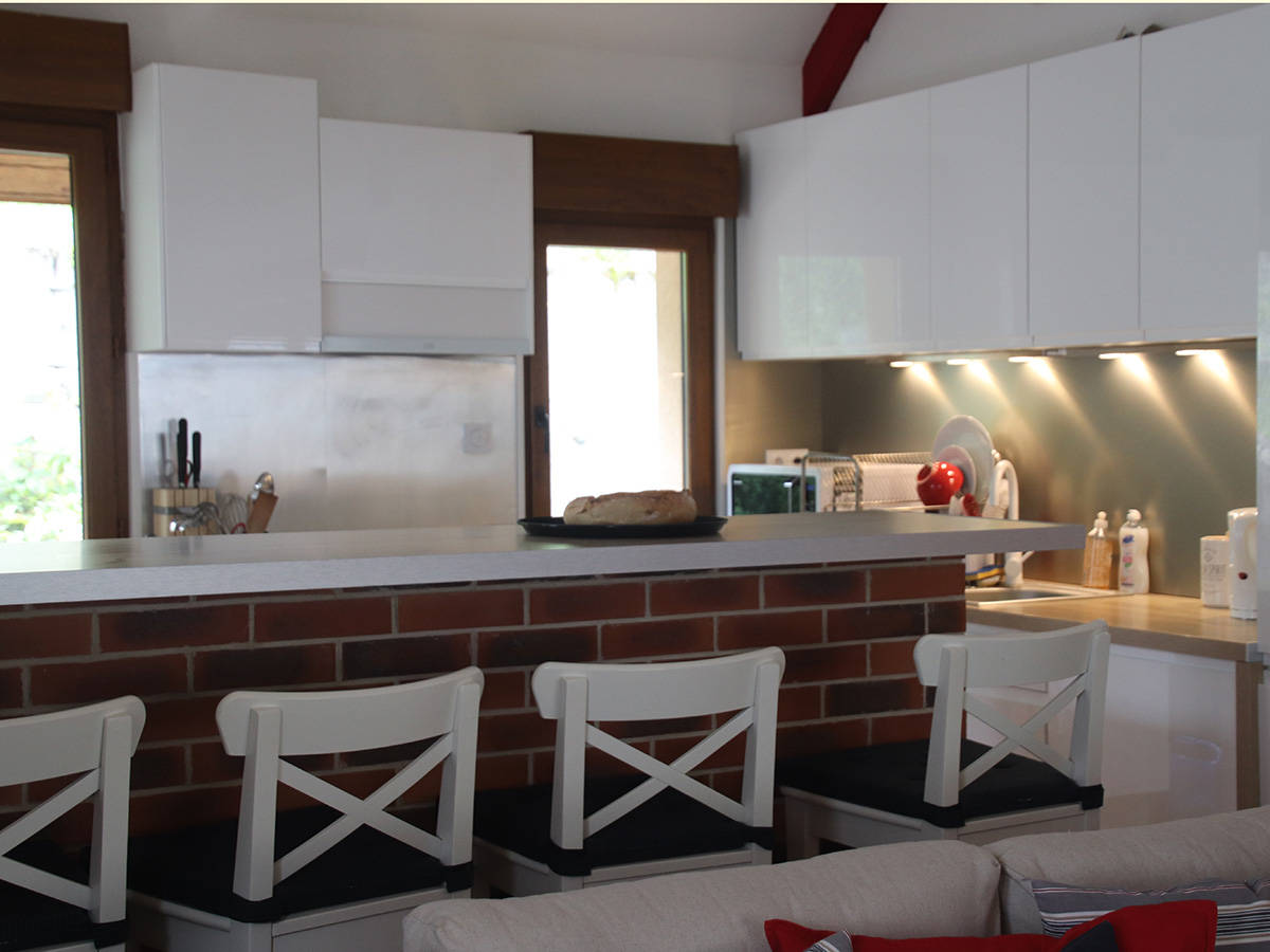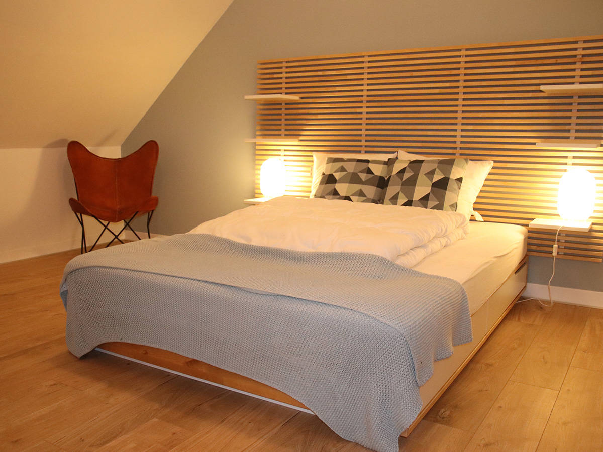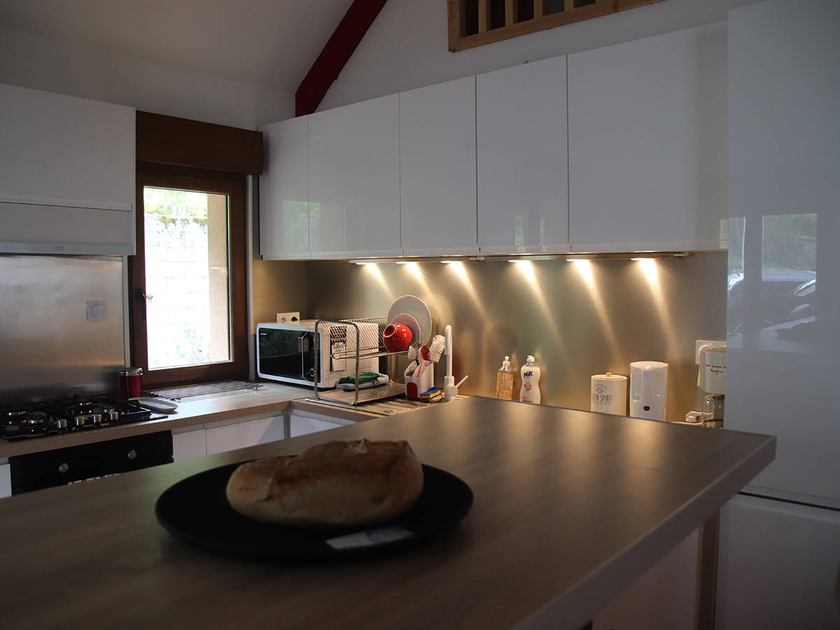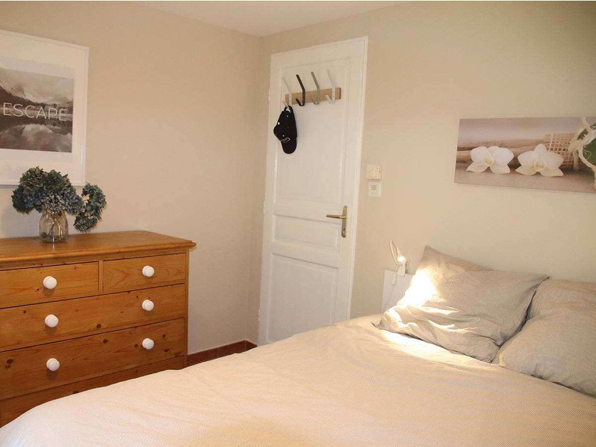 Maison au calme et de plain-pied comprenant : -un séjour équipé : TV à écran plat, Wi-Fi, un poêle à bois décoratif. -une cuisine équipée : lave-vaisselle, four, plaques de cuisson quatre feux à gaz, four micro-ondes, réfrigérateur-congélateur, lave-linge 7 kg et sèche-linge. -Au rez-de-chaussée : deux chambres avec lits 140 cm, plus une chambre d’enfants avec deux lits superposés, deux salles d’eau avec douche et WC -Et à l’étage : une grande chambre avec lit 160 cm, salle d’eau avec douche et WC séparé. Télévisions dans les chambres d’adultes. Soit au total quatre chambres pour six adultes et deux enfants et trois salles d’eau avec trois WC. -Jardin privatif clos équipé d’un barbecue Weber.