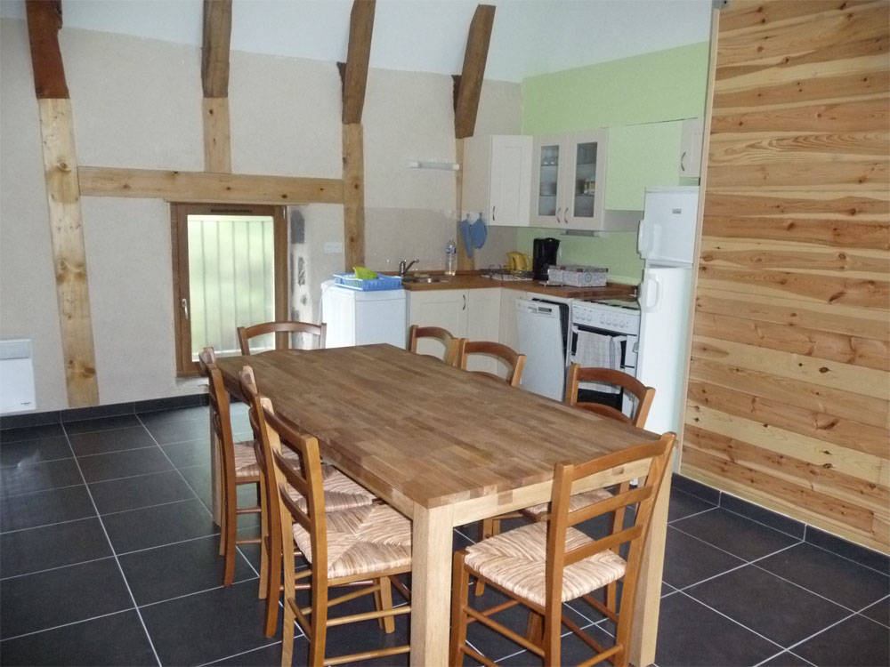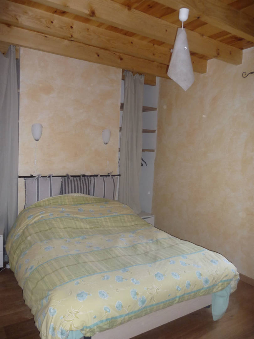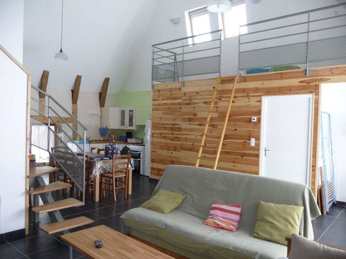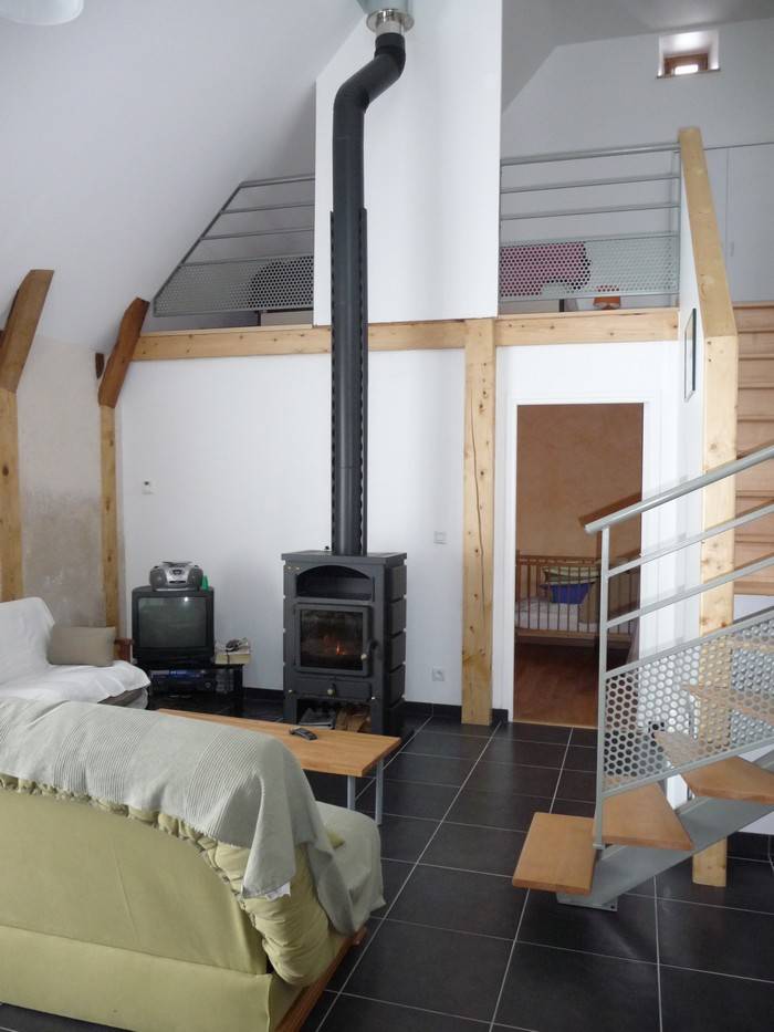 Maison indépendante de 8 personnes, chaleureuse et confortable grange rénovée avec goût, 2 chambres avec lits de 140 cm et 1 chambre en mezzanine avec quatre lits de 90 cm.