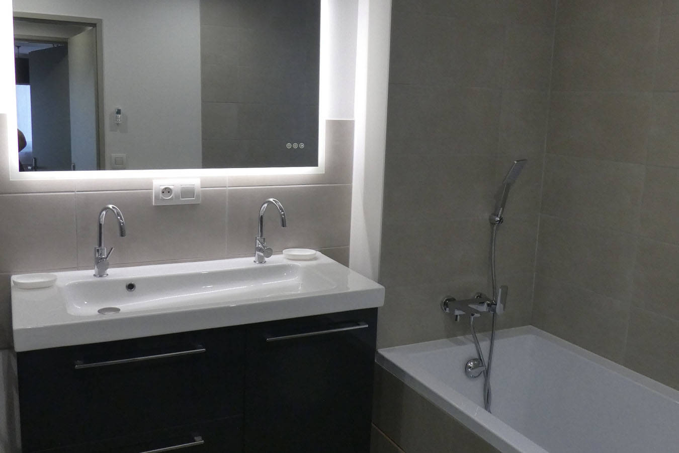Au rez-de-chaussée : salon indépendant, séjour / cuisine, salle-de-bain avec douche + baignoire, WC séparés, coin laverie, cellier.