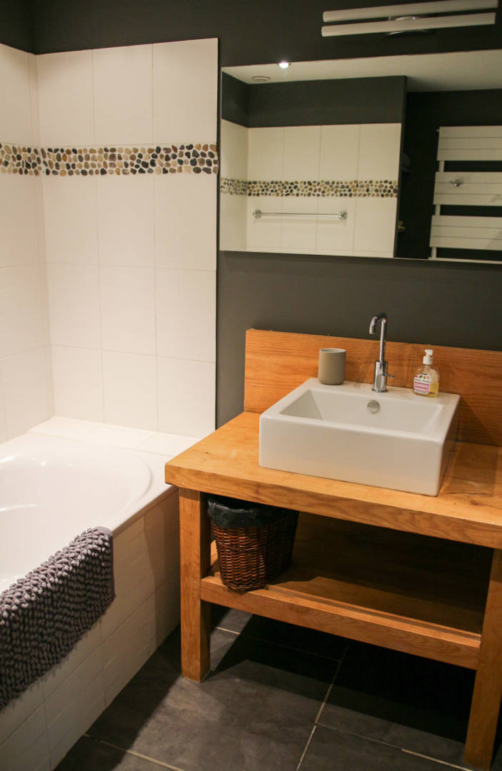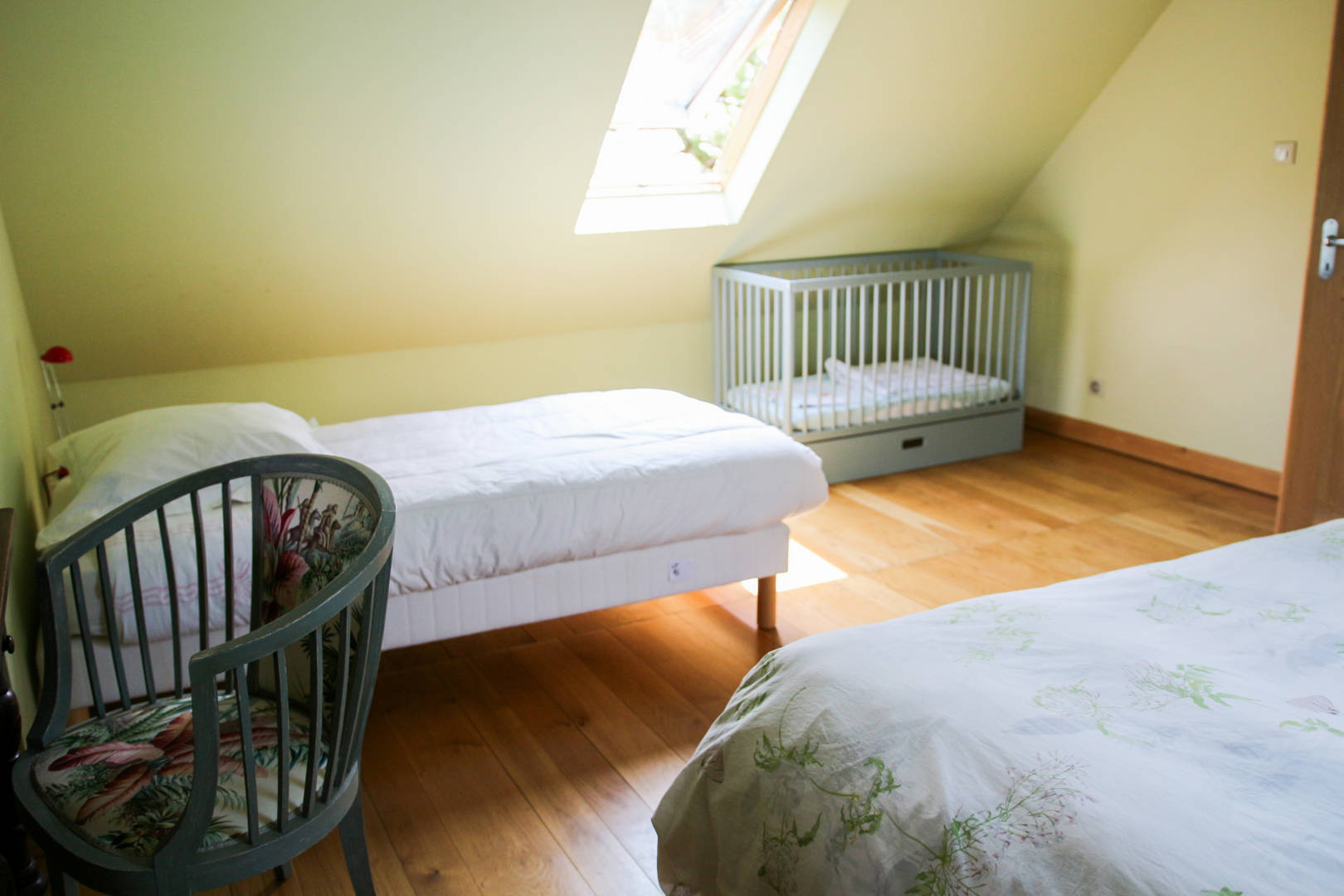 Au RDC : cuisine équipée/salon, 1 chambre (2 lits 90), 1 chambre (1 lit 140),(…)