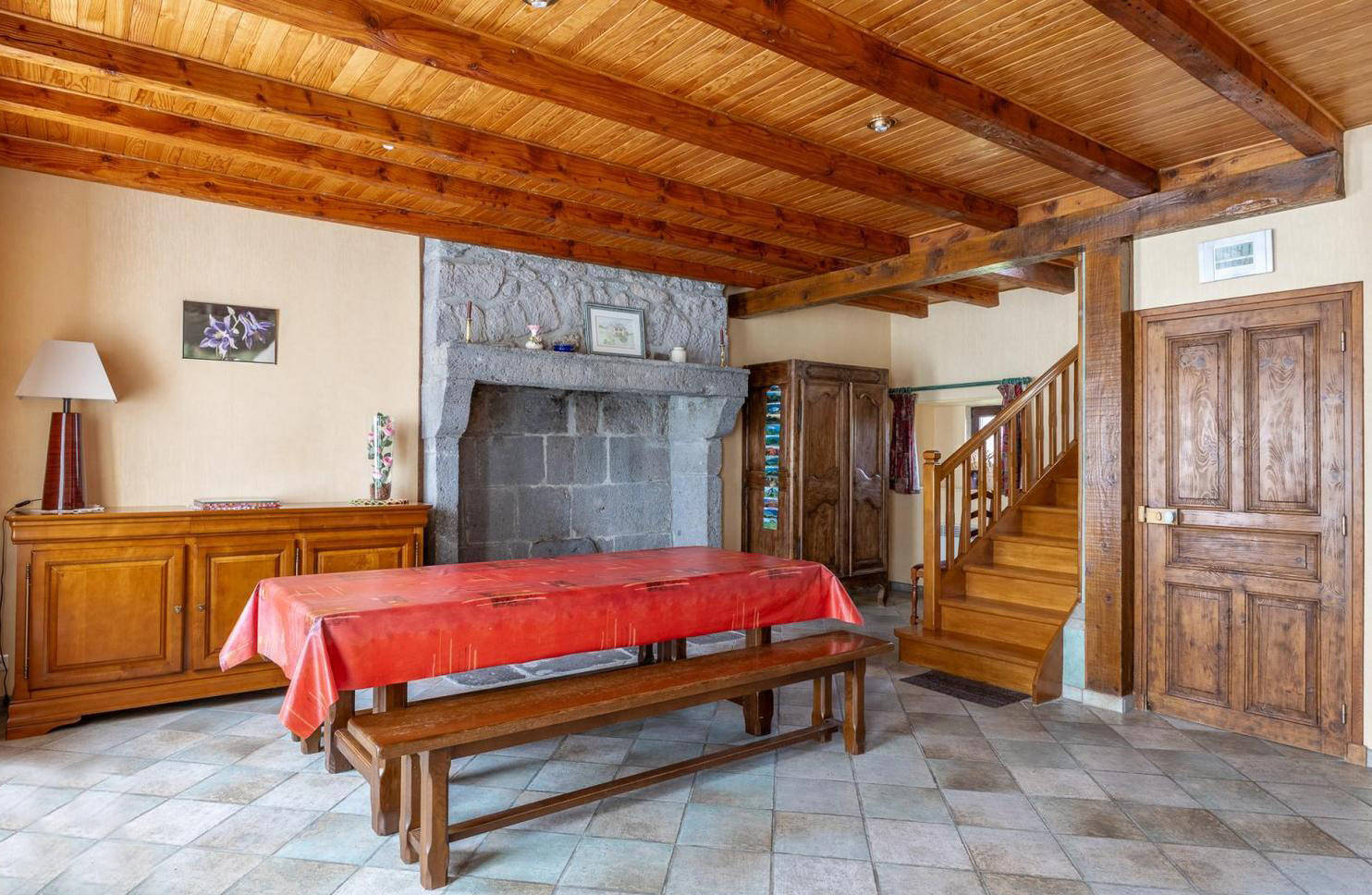 Maison mitoyenne avec un garage appartenant au propriétaire, au rez-de-chaussée et 1er étage. Salle de séjour, cuisine. 3 chambres, salle de bain, 2 WC. Petite cour attenante non fermée. Chauffage électrique selon consommation. Commerces et services : Rochefort-Montagne 3.5km.