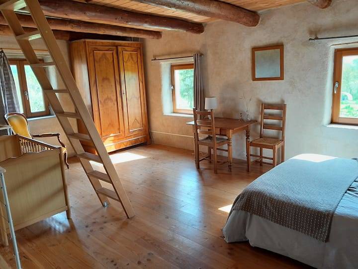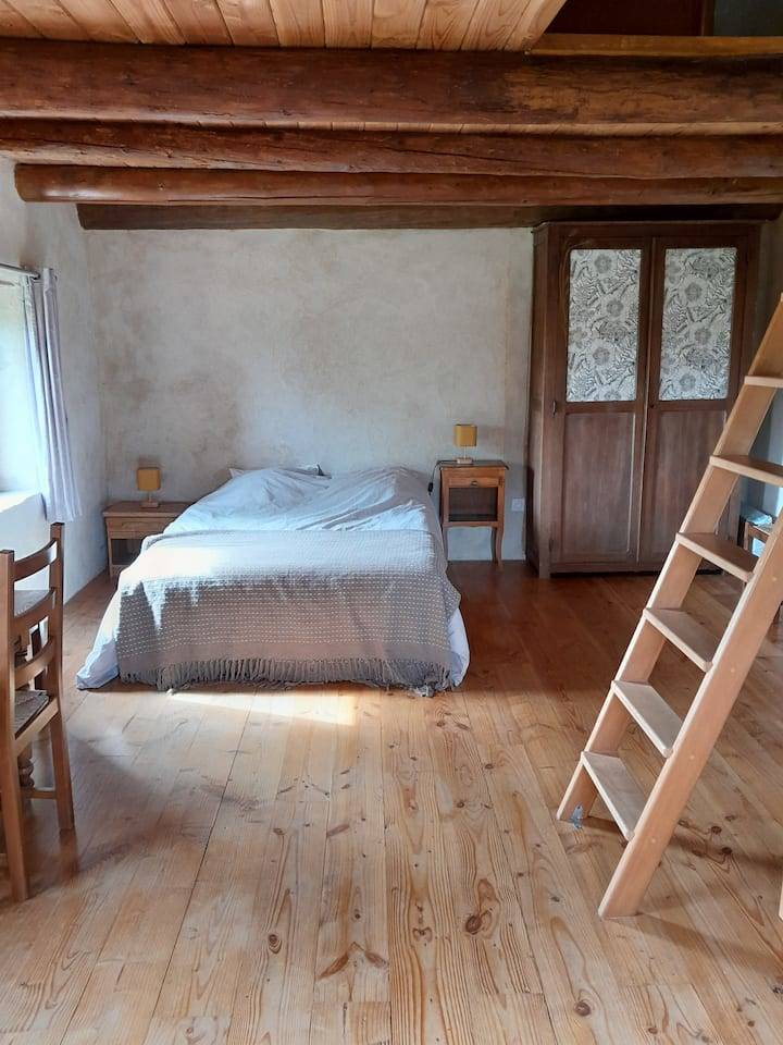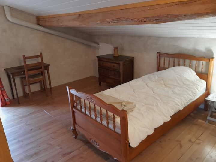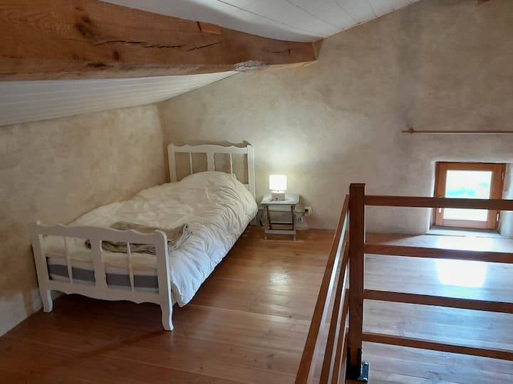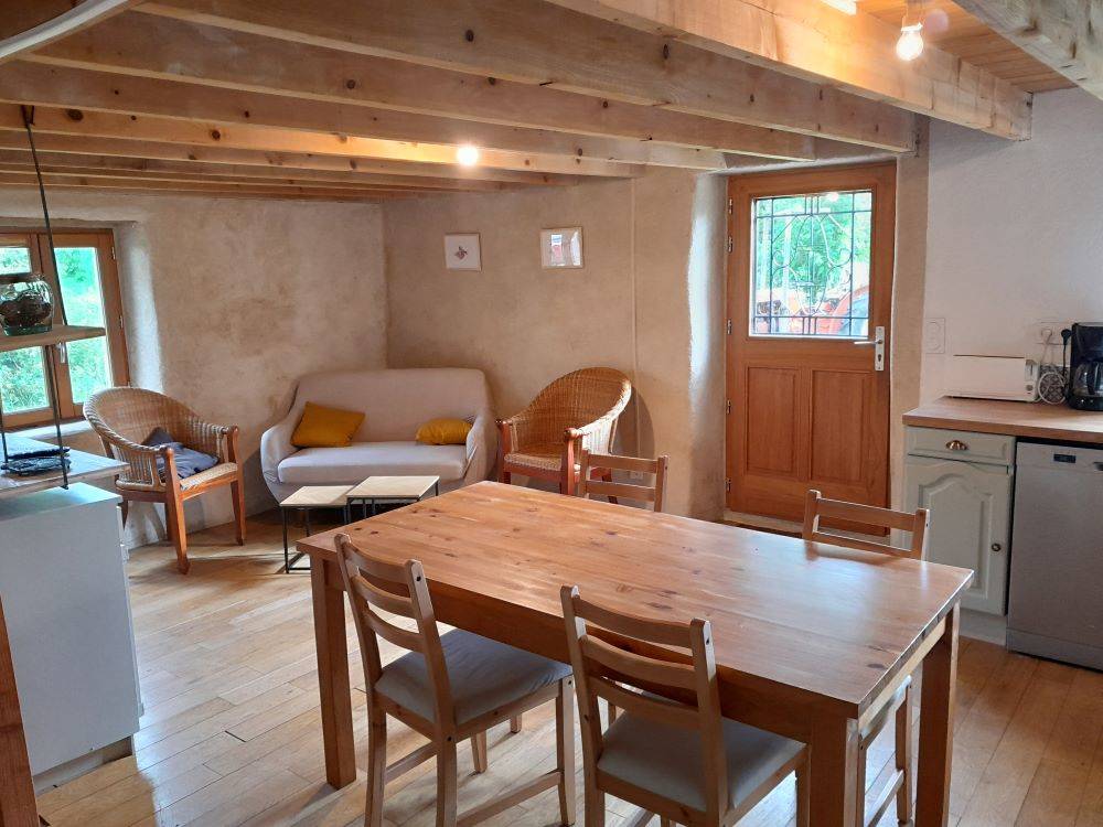 La pièce de vie et la salle d’eau se trouvent au rez-de-chaussée, la première chambre au 1er étage et la seconde au grenier. Attention pour les personnes vraiment grandes c’est une maison ancienne : le rez-de-chaussée a une hauteur sous plafond de 1,95m sous les poutres. Le grenier est accessible(…)