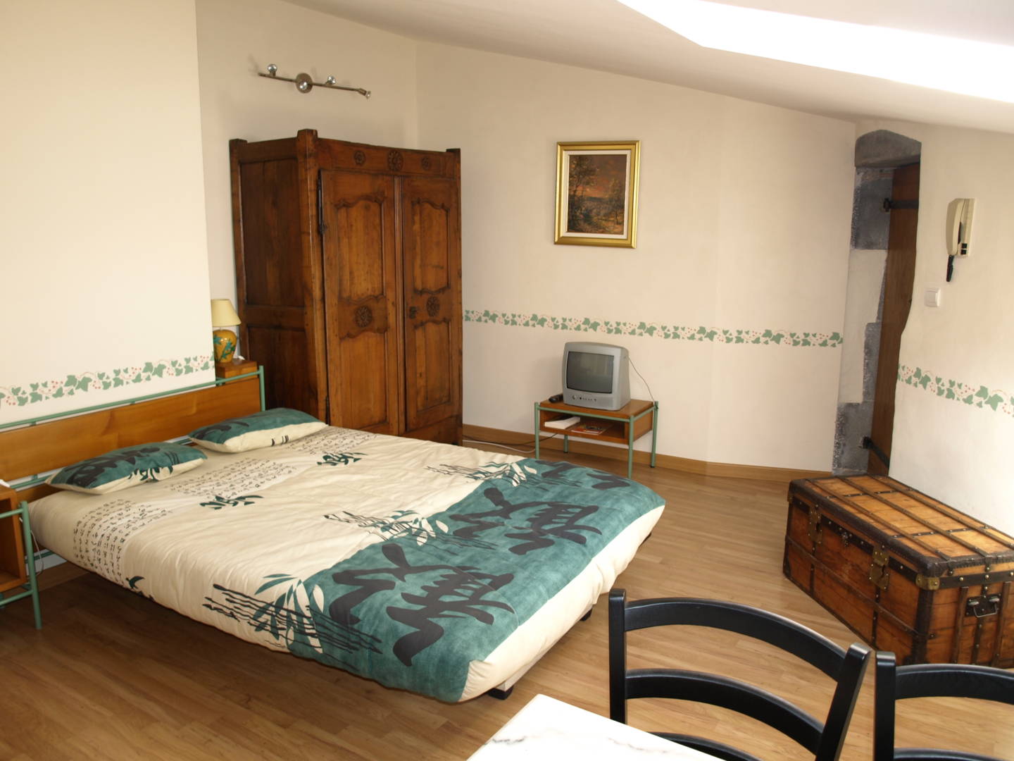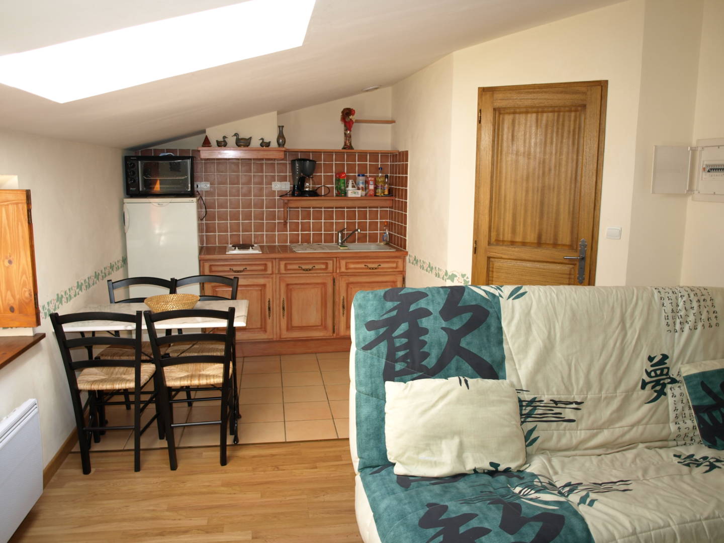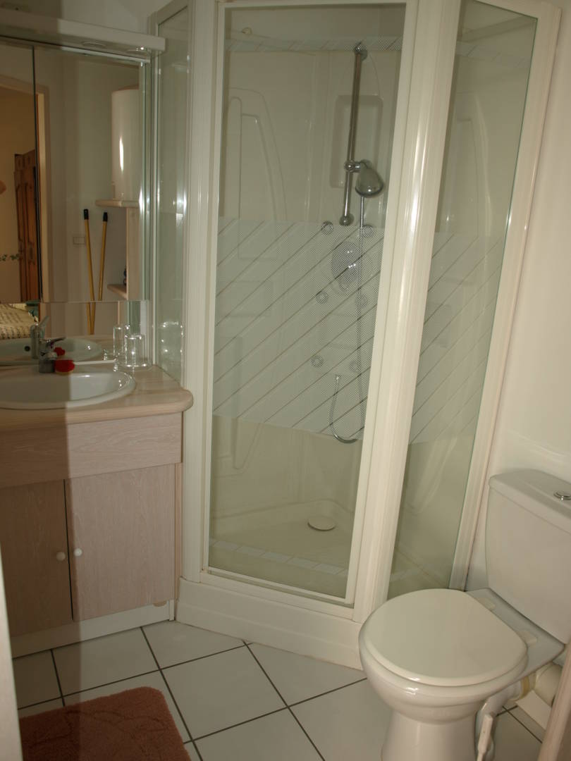 L’accès au logement se fait par une cour intérieure. La pièce de vie possède un coin cuisine, une banquette-lit (couchage 2 personnes) et une salle d’eau.