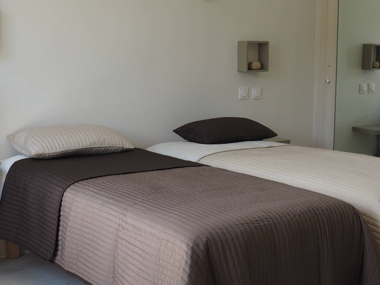 Ce studio comprend une pièce principale composée d’un coin cuisine avec micro-onde et mini four; de 2 lits 1 personne et d’une salle d’eau. Télévision écran plat. Accès Wifi.