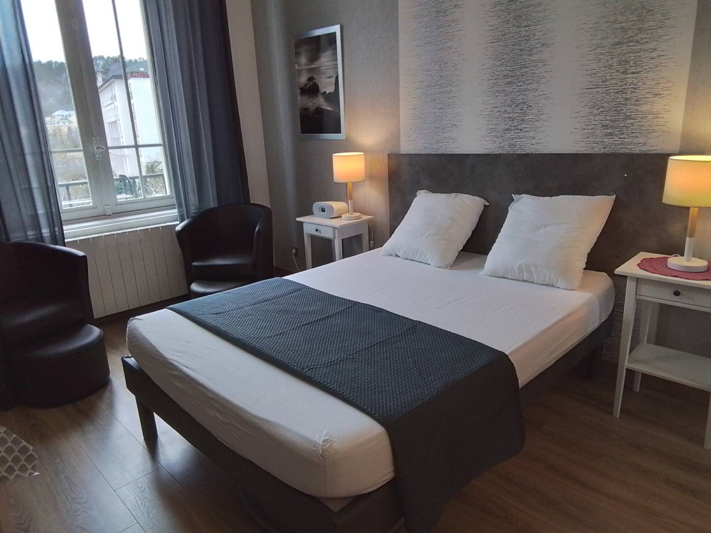 Le Grand Hôtel est le dernier palace dans le style Art Déco construit à Châtel-Guyon, transformé en logement dans les années 1970. Situé au cœur de la ville face au Parc Thermal, le logement est classé 2 étoiles, de 26 m² il est totalement équipé, très lumineux avec une décoration soigné.