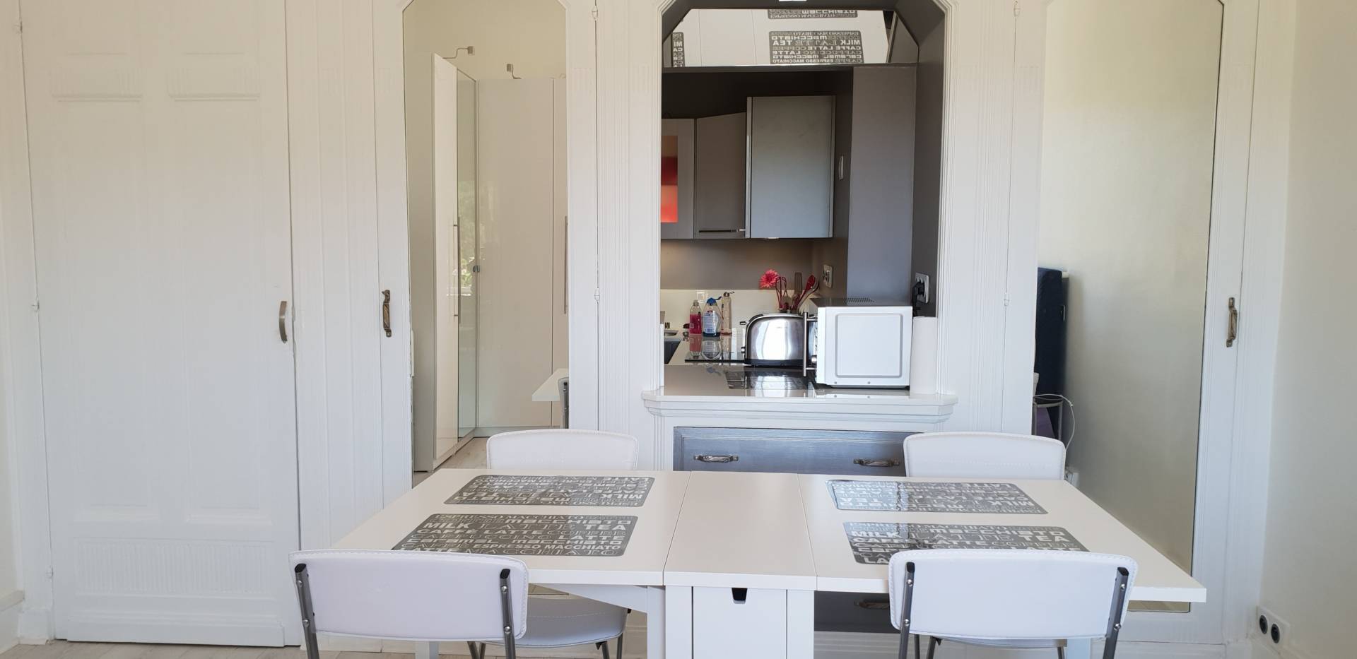 Studio refait à neuf très fonctionnel. Cuisine équipée et belle douche.
