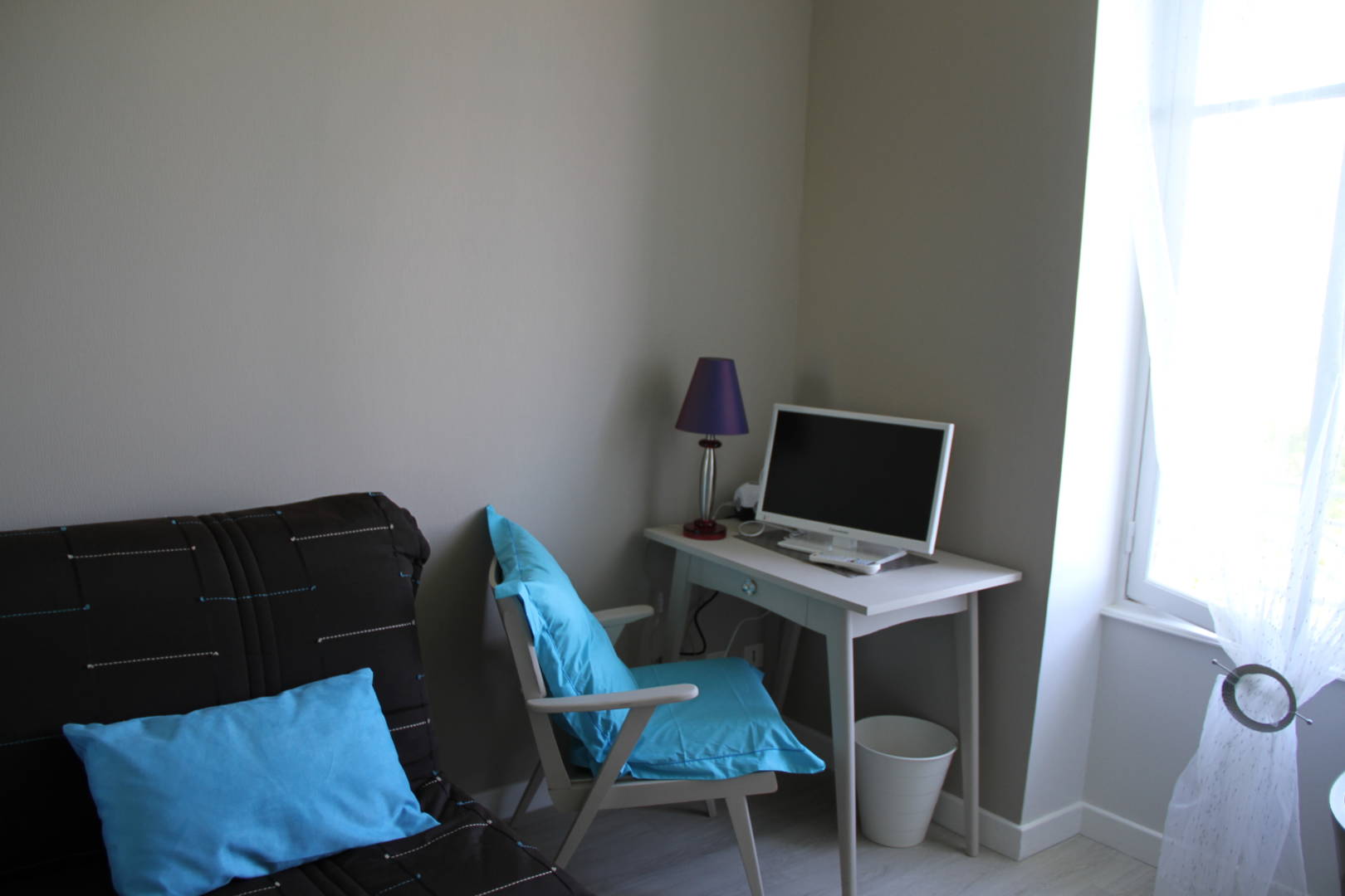 Ce studio est composé d’une pièce principale comprenant un coin cuisine avec micro-onde et mini four; un lit 1 personne (120 cm) et une salle d’eau. Télévision écran plat. Accès Wifi. Fenêtres phoniques et thermiques 2 ventaux et une fenêtre dans la salle de bain. Les animaux sont acceptés avec un supplément tarifaire après accord préalable du propriétaire.