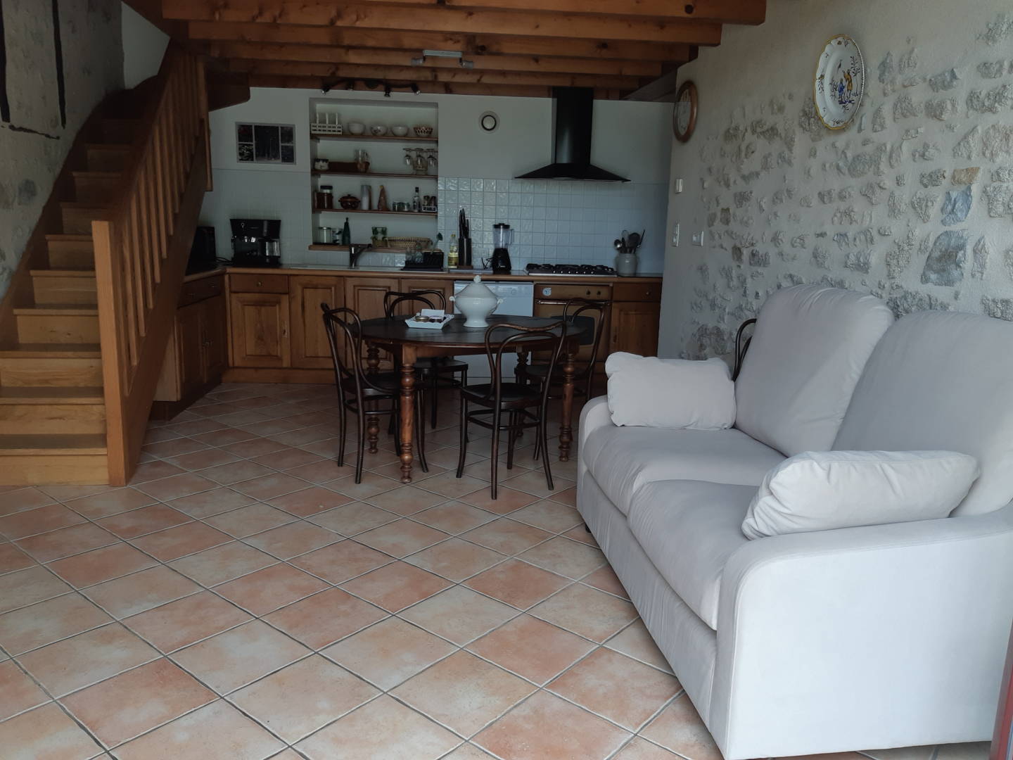– pièce de vie avec cuisine équipée : four – cuisinière 6 feux – four micro-ondes – lave-vaisselle -(…)