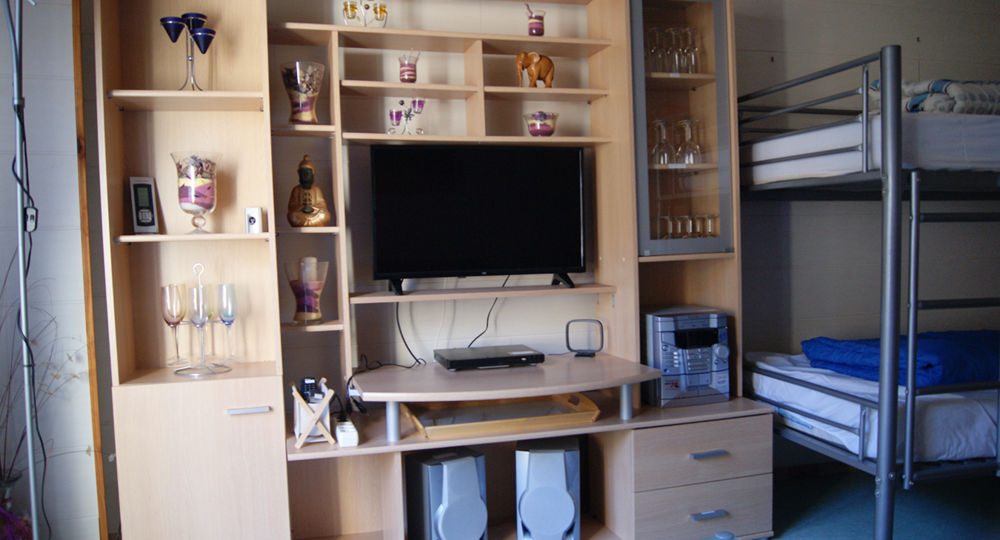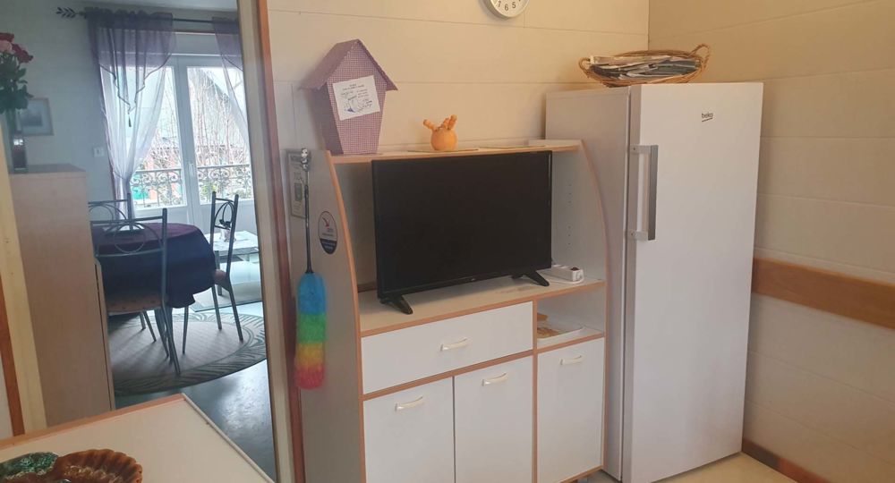 L’appartement est équipé de vaisselle, plats, grand réfrigérateur, grand four, micro-ondes, lave-vaisselle, plaque de cuisson 4 feux, hotte, grille-pain, couteau électrique, mixeur plongeant électrique, batteur électrique, cafetière électrique, bouilloire électrique, machine à laver, sèche linge, congélateur indépendant du frigo, sèche cheveux. En plus des équipements habituels nous mettons à votre disposition deux services à fondue, deux services à raclette, une pierrade ainsi qu’un gaufrier. Deux écrans plats sont à votre disposition (un sur réception hertzienne, l’autre sur la borne orange, ceci afin de vous permettre d’avoir la télévision même par mauvais temps), vous disposez aussi d’un lecteur DVD avec prise USB et d’une chaîne Hi-Fi. L’appartement est équipé d’une connexion Wifi privative illimitée.
