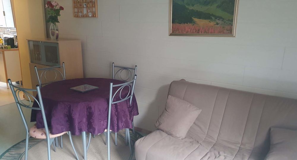Ce trois pièces est composé d’une très grande cuisine pièce à vivre équipée, d’une ‘chambre chinoise’ qui se ferme, d’une autre chambre salon suivant vos envies qui se ferme aussi, d’une salle de bain avec douche hydro-massant et d’un WC indépendant. Un grand local à ski fermé, peut se transformer en local à poussette. Une cour commune fermée (pour la sécurité de vos enfants) avec barbecue vous attend.