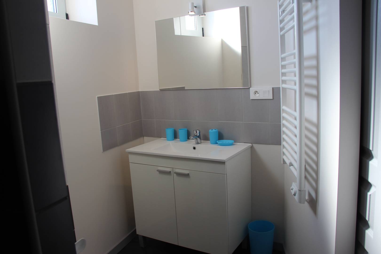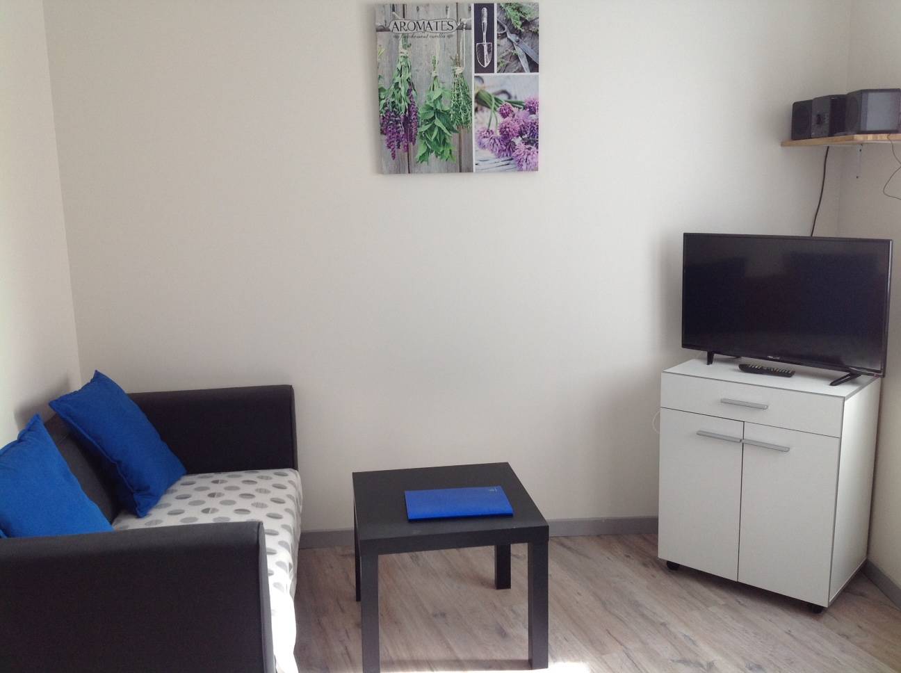 Appartement 33 m² de 1 à 2 personnes situé rez de chaussée de la résidence. Pièce principale (canapé fixe, table et chaises, télévision…) avec coin cuisine (réfrigérateur-congélateur, four et micro-onde) et salle d’eau séparée, grande chambre séparée avec un lit 2 personnes 160×200. Wifi gratuit, Lave-linge et sèche-linge collectifs. Grande terrasse commune aménagée et Parking. Les animaux sont acceptés après accord préalable du propriétaire sans supplément tarifaire.