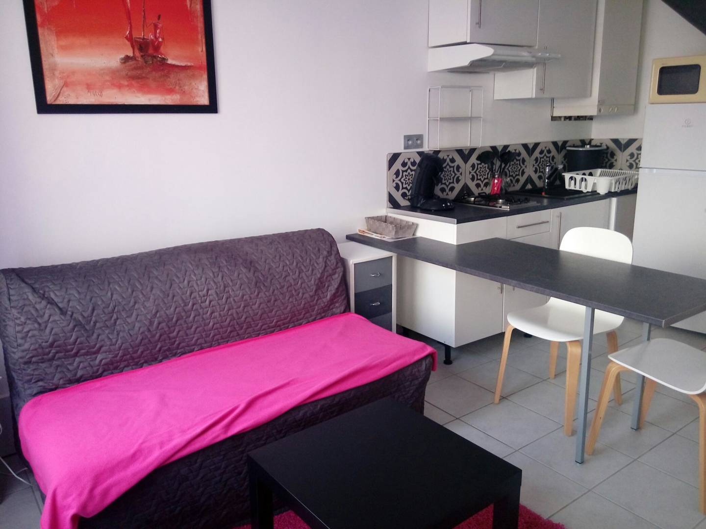 La maison se compose au rez-de-chaussée d’un coin cuisine entièrement équipé et d’un coin salon avec BZ convertible.