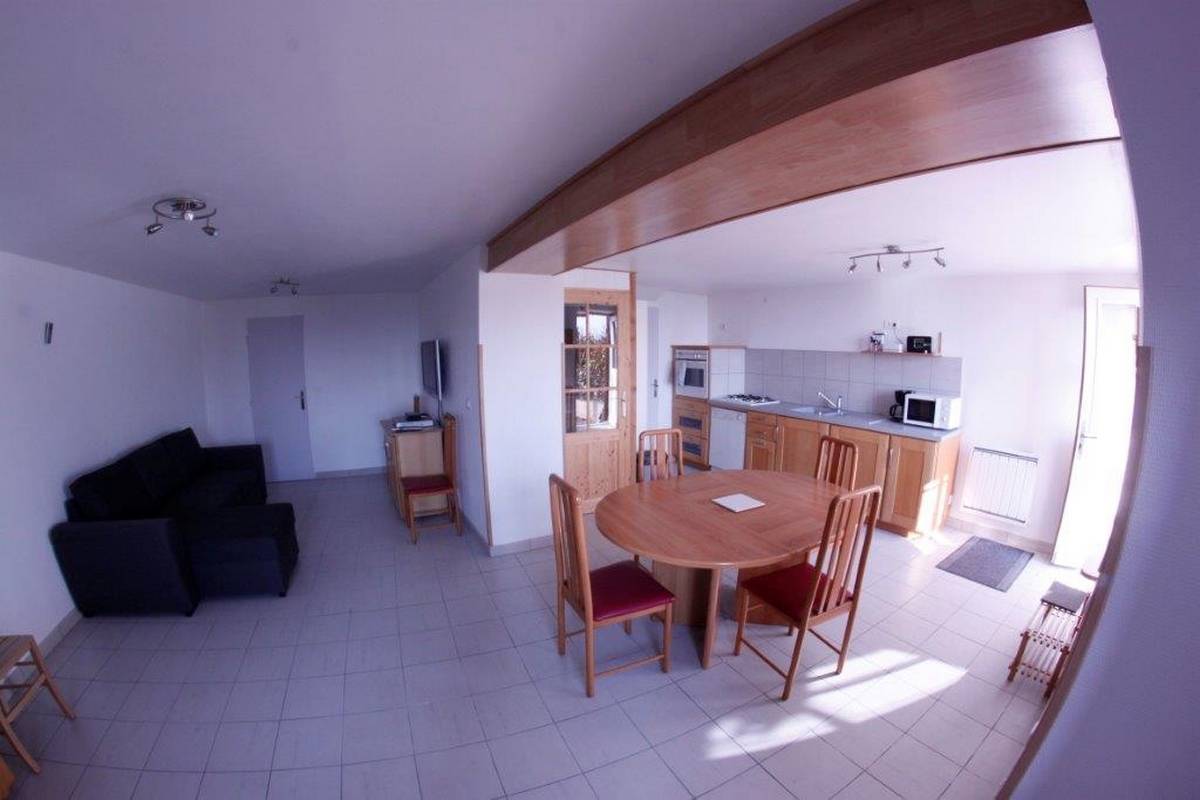 – au rez-de-chaussée d’une pièce de vie (40m2) composée d’une cuisine intégrée, salle à manger salon avec canapé (convertible 2 places), buanderie avec WC et cave