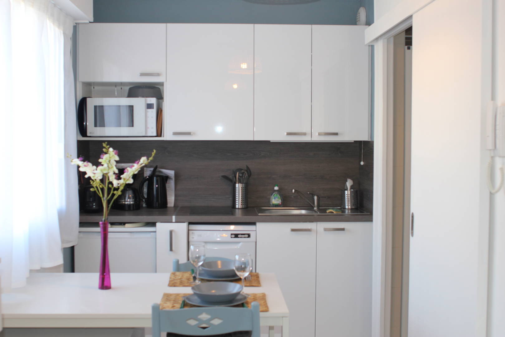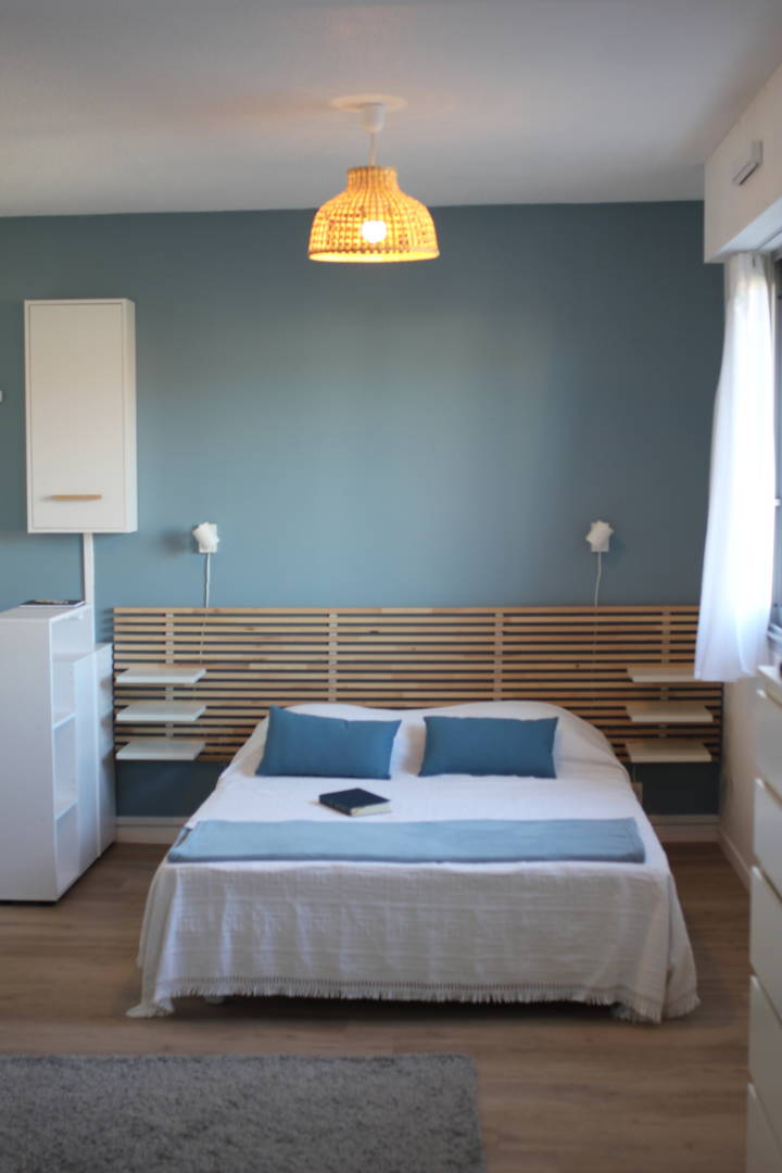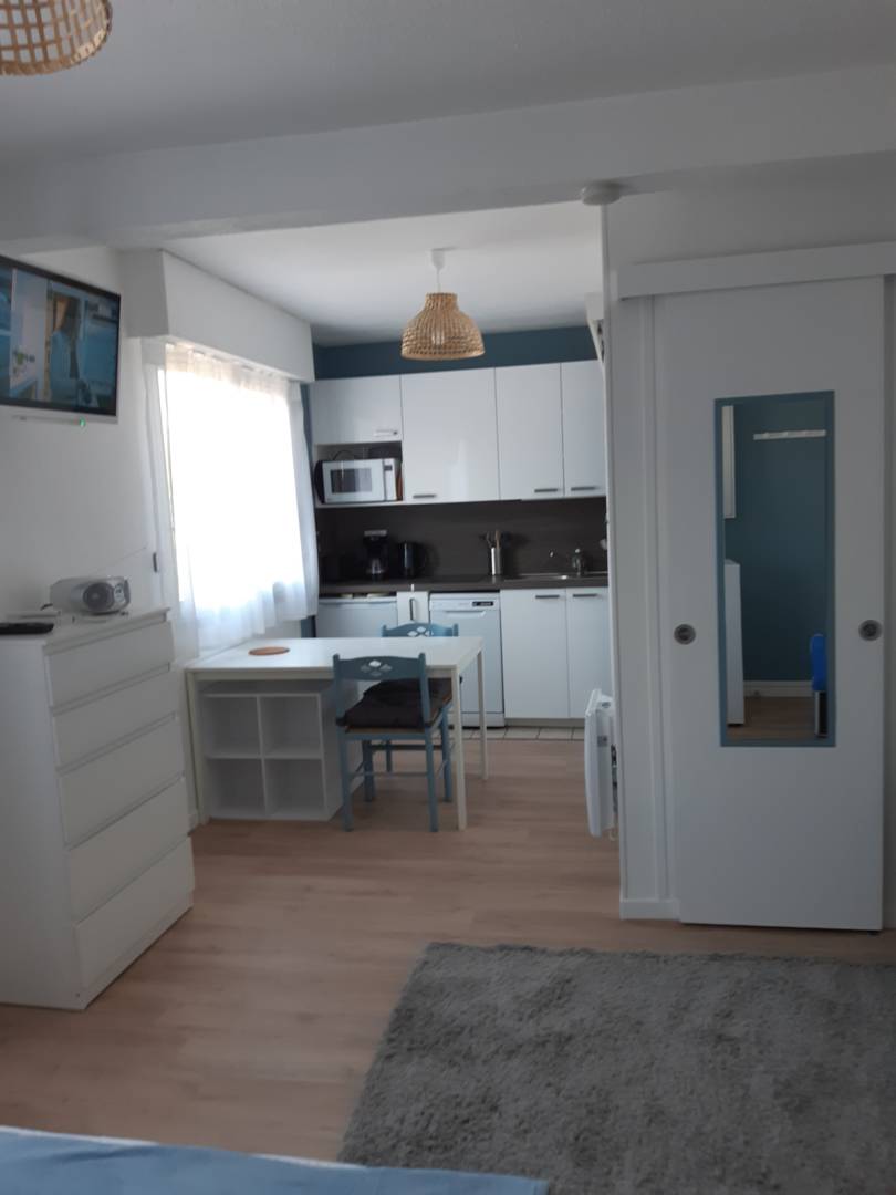 L’appartement de type T1 est situé au 3ème étage avec ascenseur. Il a été intégralement refait en 2021. L’ensemble du mobilier est récent. Le logement est orienté vers l’arrière du bâtiment, non côté avenue, donc très calme. Il dispose de deux grandes fenêtres et bénéficie d’une vue dégagée sur la vieille ville. D’une capacité maximale de 2 personnes, il couvre 23m² et comprend une pièce principale avec :
