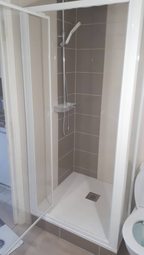 – une salle de bain avec grande douche, grande vasque et wc. Une machine à laver, un étendoir à linge et un sèche-cheveux sont mis à disposition, ainsi que des ustensiles de ménage (balais, aspirateur, fer et table à repasser, …).