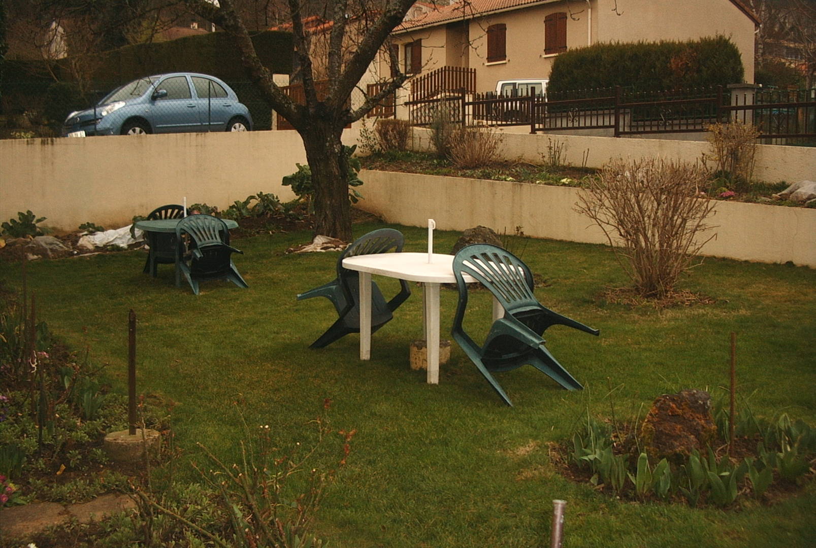 Emplacement pour les voitures. Proches des commerces et bus, face au terrain de boules. Agréable jardin fleuris.