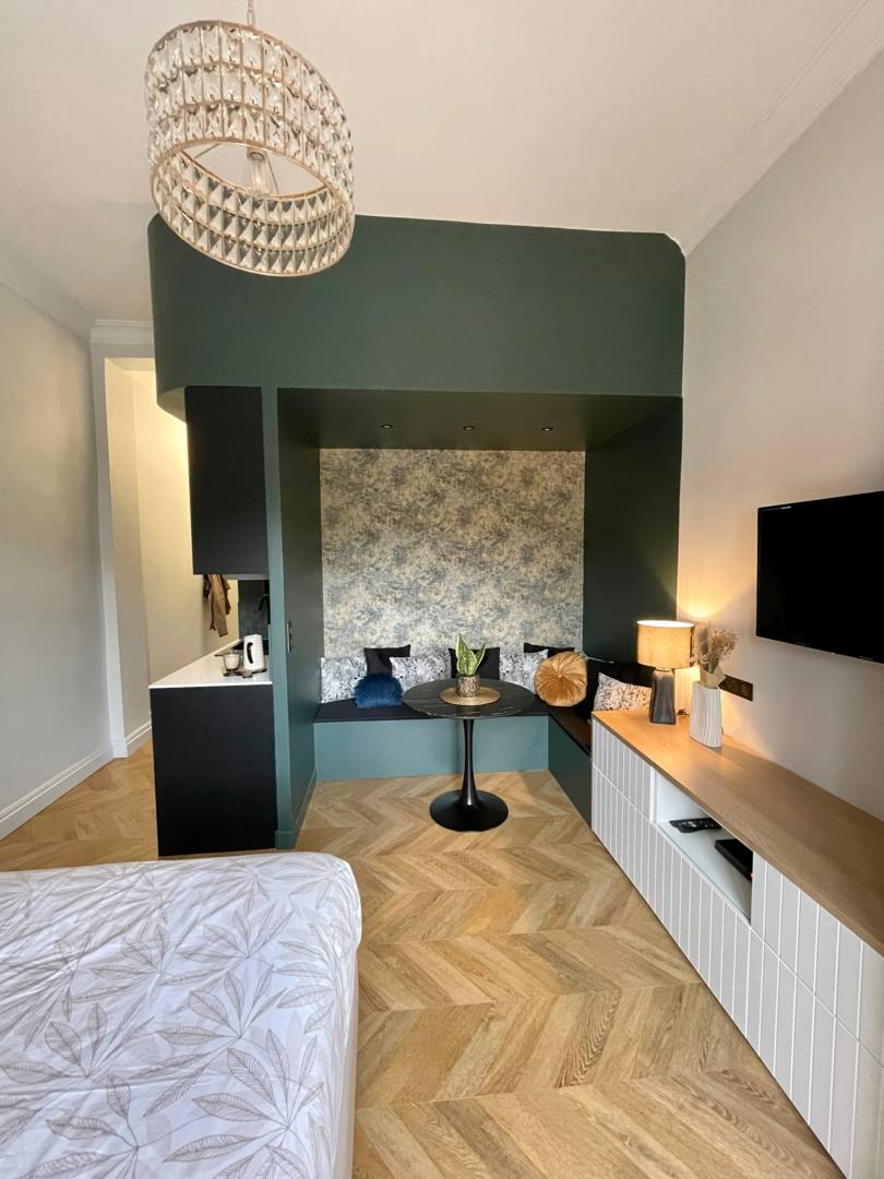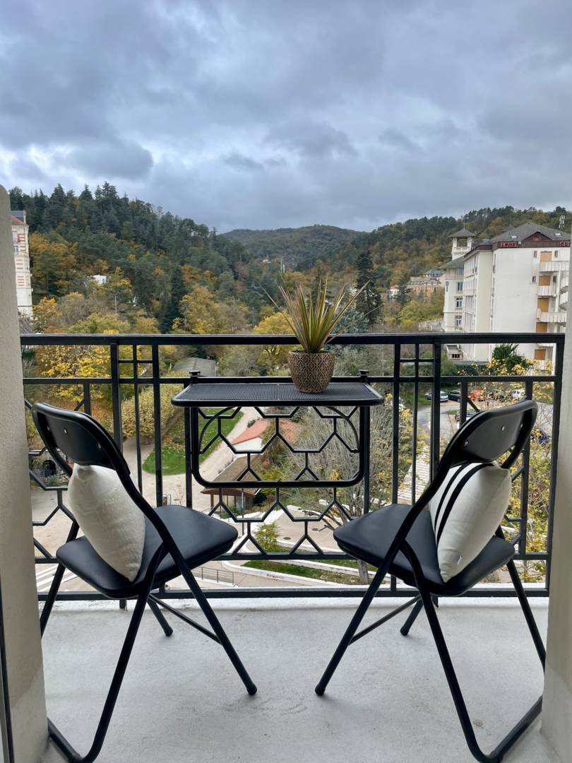 La résidence du Grand-Hôtel est idéalement située, proche des restaurants renommés de la ville, du théâtre, du casino, des termes et des parcs. C’est une résidence idéale pour venir en cure ou bien passer des vacances paisibles. L’appartement est optimisé pour se sentir bien avec beaucoup de rangements, d’équipements pratiques et un style unique. Il se compose d’une pièce principale, avec espace repas spacieux, beaucoup de rangements, une TV, un lit 2 places et une cuisine équipées. Un WC séparé de la salle de bain. Tout est pensé pour vous relaxer notamment dans la baignoire balnéothérapie ou sur le balcon aménagé avec sa vue panoramique. Les draps et les serviettes de bain sont fournies. De nombreuses places gratuites sont disponibles à proximité du logement pour facilité votre stationnement.