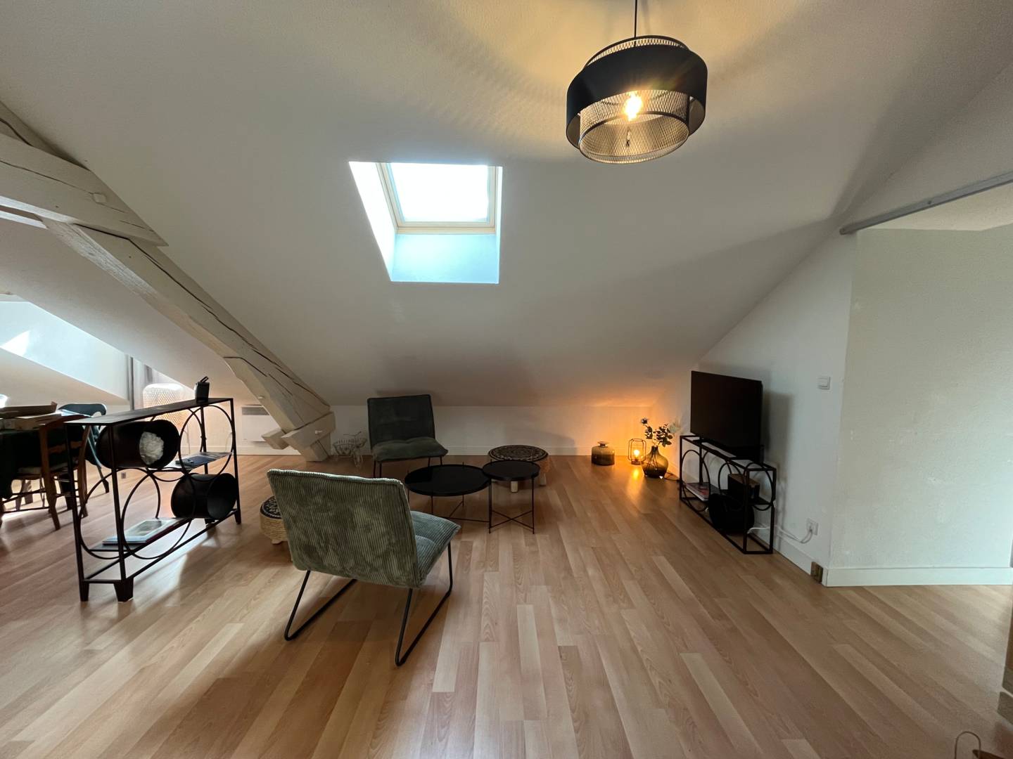 L’appartement, mansardé, situé au dernier étage avec ascenseur, accueillera 1 à 2 personnes.