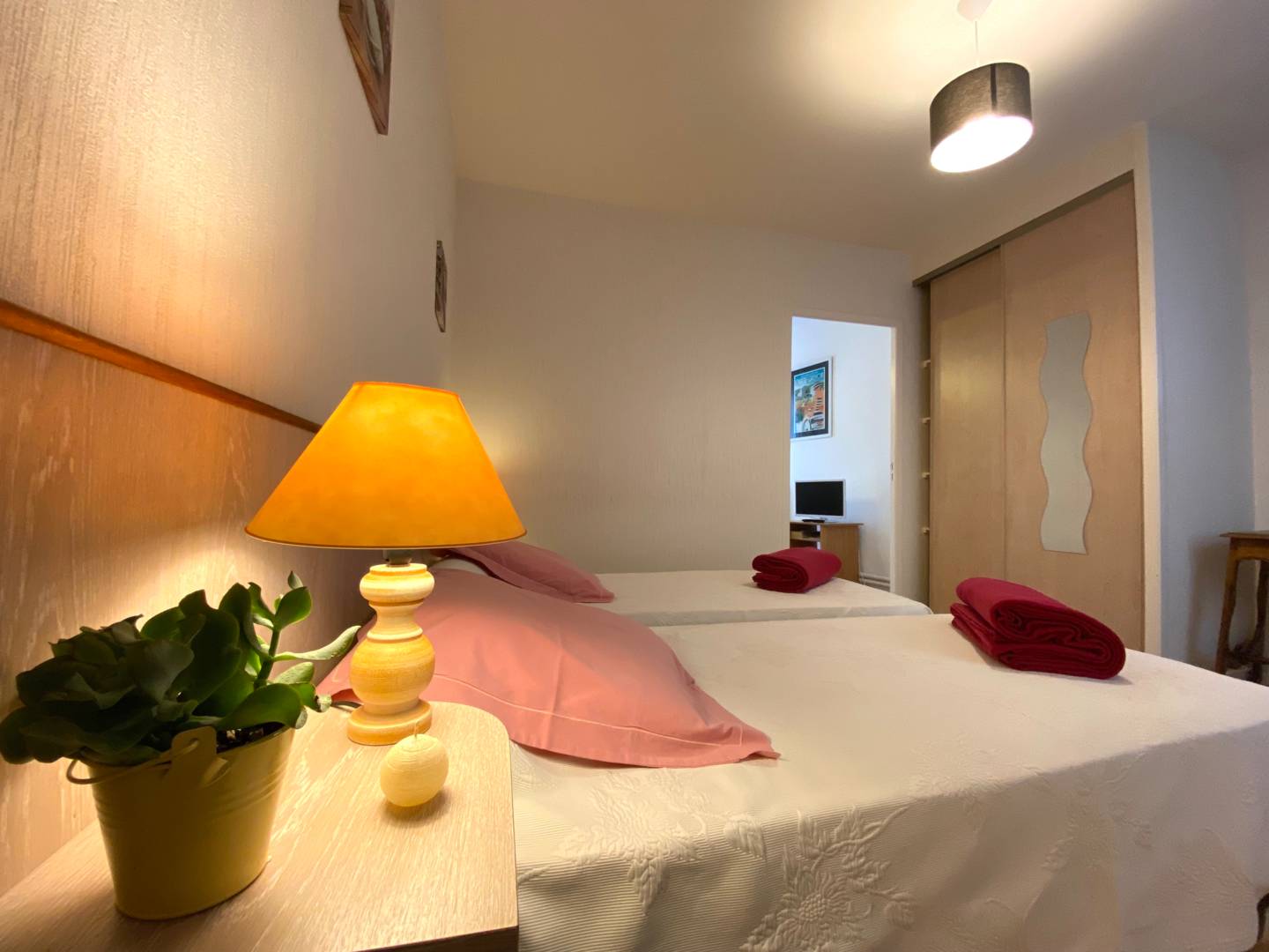 Très ensoleillé, cet appartement se compose d’un séjour avec une télévision et un clic-clac, d’une chambre (2 lits d’une personne), d’une cuisine indépendante toute équipée (avec réfrigérateur-congélateur, four, micro-ondes) et d’une salle de bain avec une douche à l’italienne, lavabo et W-C. Il est orienté plein sud. Un balcon. L’accès(…)