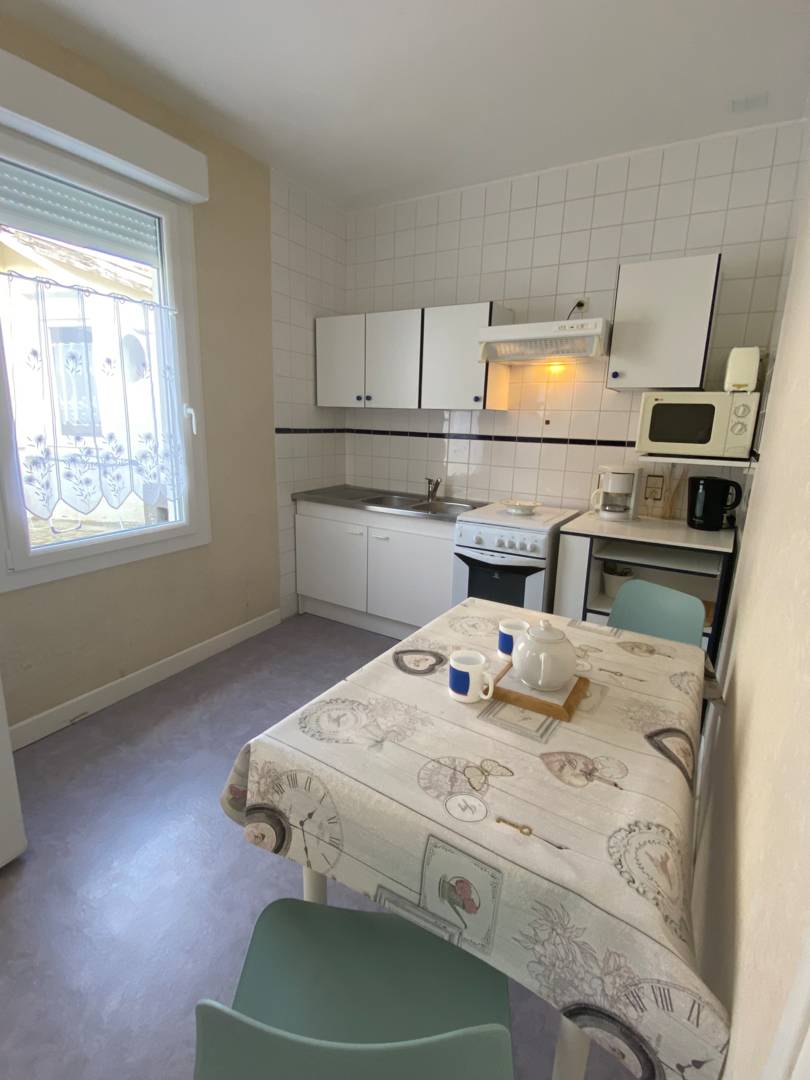 Cet appartement se compose d’une chambre très ensoleillée avec un lit double de 2 personnes, d’une cuisine indépendante, toute équipée avec réfrigérateur-congélateur, four, micro-ondes, et d’une salle d’eau récemment rénovée avec une douche à l’italienne, lavabo et W-C. Il est orienté plein sud. L’accès au Wifi est gratuit.. Une terrasse commune avec un salon de jardin et parking privé dans une cour sont à votre disposition. Location de draps et de linge de toilette est possible. Mme JAIME, la propriétaire, vous accueillera elle-même.