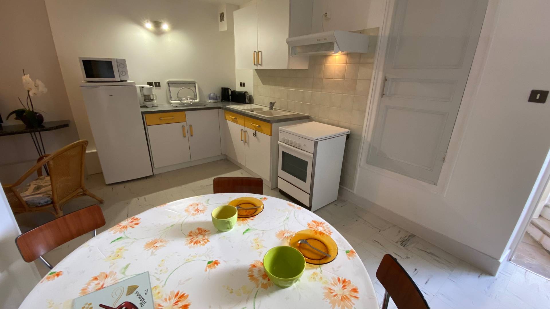 L’appartement n°5 est tout confort et très calme. Il est orienté sur une cour intérieure. Vous disposez d’une chambre avec un lit double, d’un coin détente avec télévision à écran plat, d’une cuisine toute équipée, d’un coin repas et d’une salle d’eau privée.