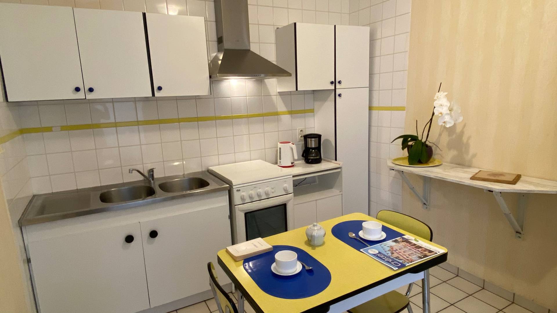 Cet appartement se compose d’une chambre avec un lit double de 2 personnes, d’un salon avec télévision et un canapé BZ, d’une cuisine indépendante, toute équipée avec réfrigérateur-congélateur, four, micro-ondes, et d’une salle de bain (douche, lavabo, w-c) L’accès au Wifi est gratuit. . Une terrasse commune avec un salon de jardin et parking privé dans une cour sont à votre disposition. Location de draps et de linge de toilette est possible.