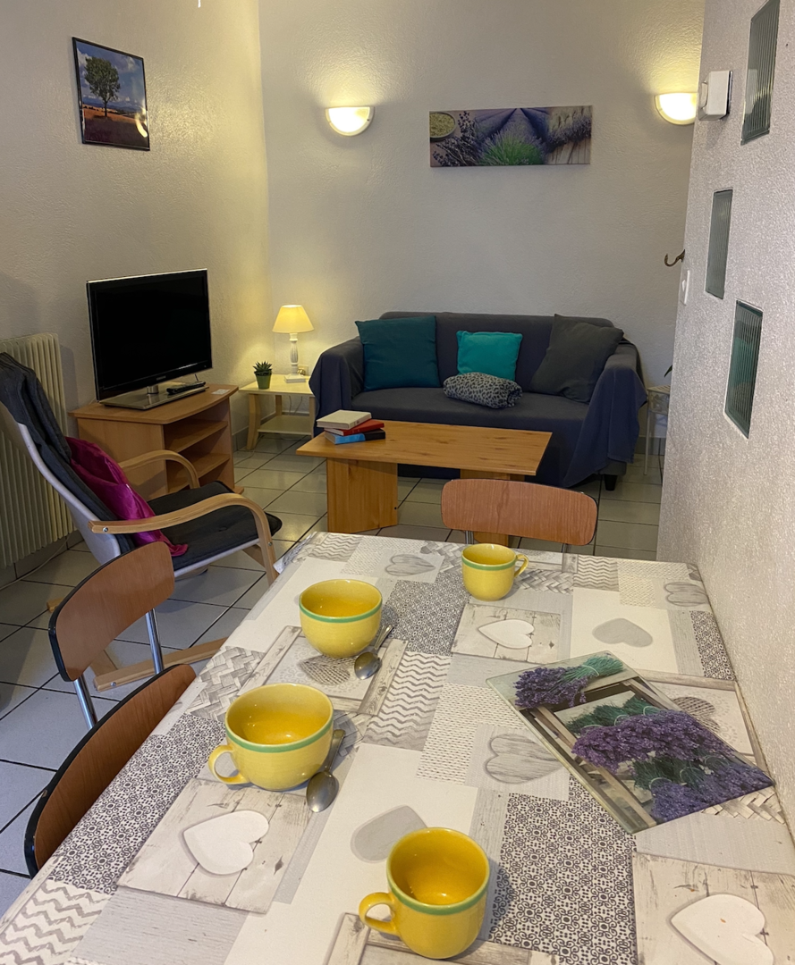 Christine et Gérard Jaime vous proposent l’appartement duplex n°8 décoré avec goût dans un cadre authentique. Très calme, cet appartement est un duplex de 32 m2. Au premier étage, vous disposez d’une cuisine toute équipée avec son coin repas mais aussi d’un salon. A l’étage, vous profitez de deux chambres(…)