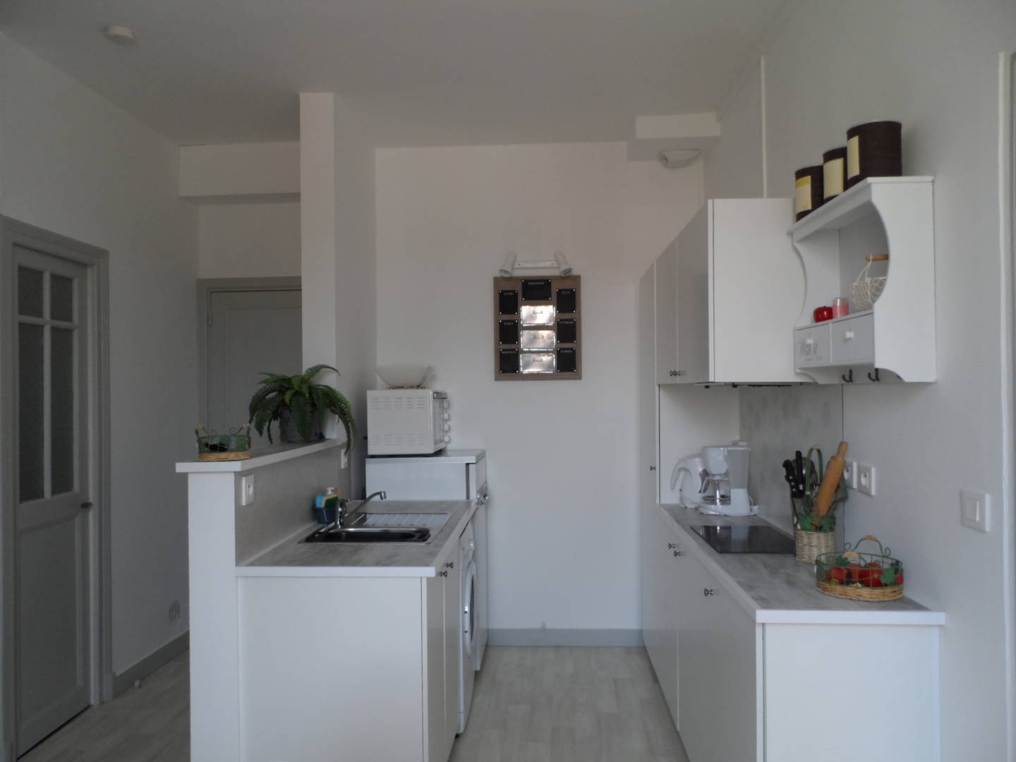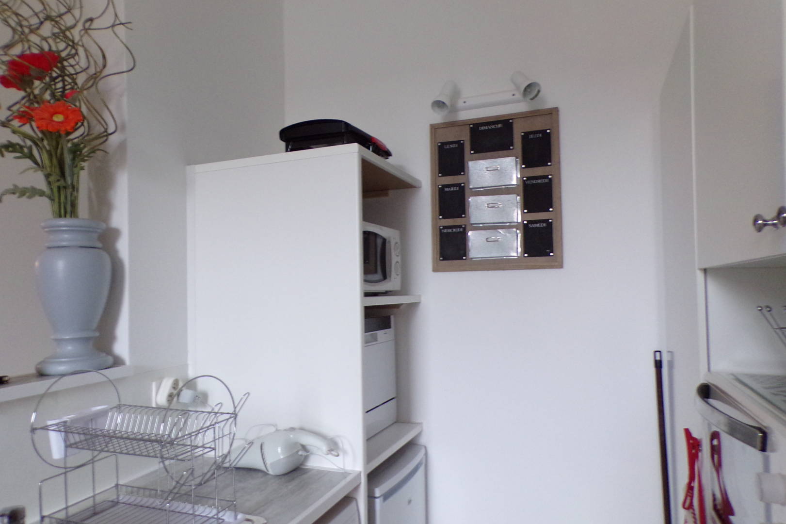 Cet appartement se compose d’une pièce principale avec un coin cuisine équipé (four, réfrigérateur, micro-onde), un coin salon / salle à manger avec télévision écran plat et un fauteuil convertible (couchage 1 personne), 1 chambre avec un lit 2 personnes une salle de bain. Lave-linge.