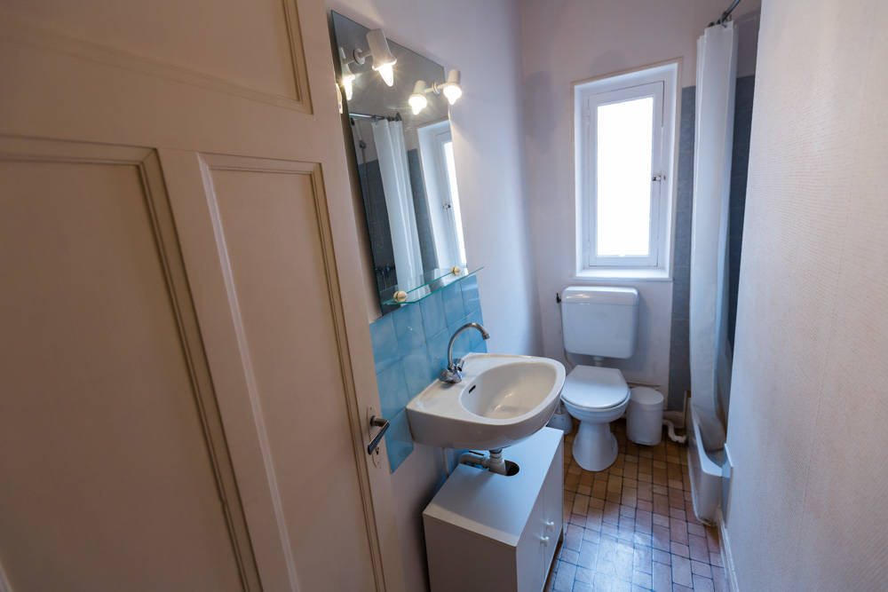 Appartement 33 m² pour 1 à 2 personnes situé au 1er étage d’une maison divisée en appartements sur 2 bâtiments séparés par une cour.