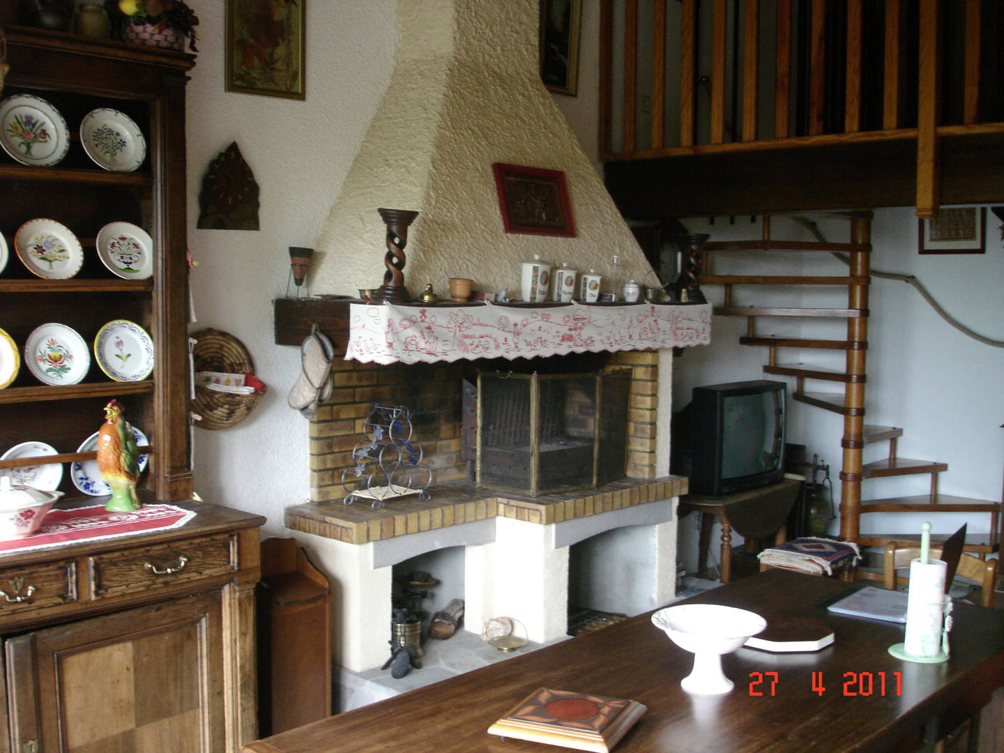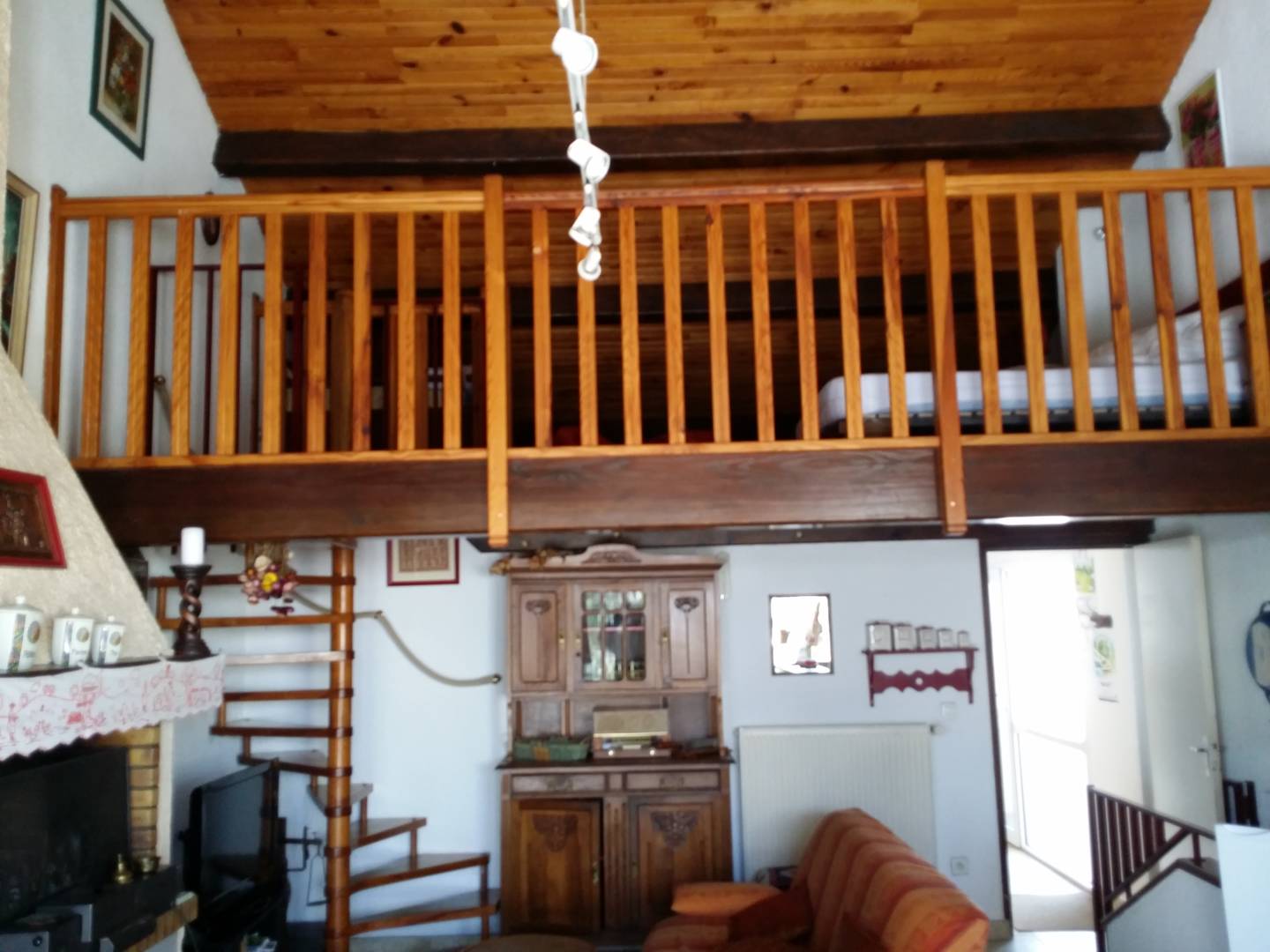 – 1 À l’étage (escalier en colimaçon en bois) 1 mezzanine ouverte sur la pièce de vie avec 1 lit 140, 1 lit de 90, 1 lit bébé à barreaux,
