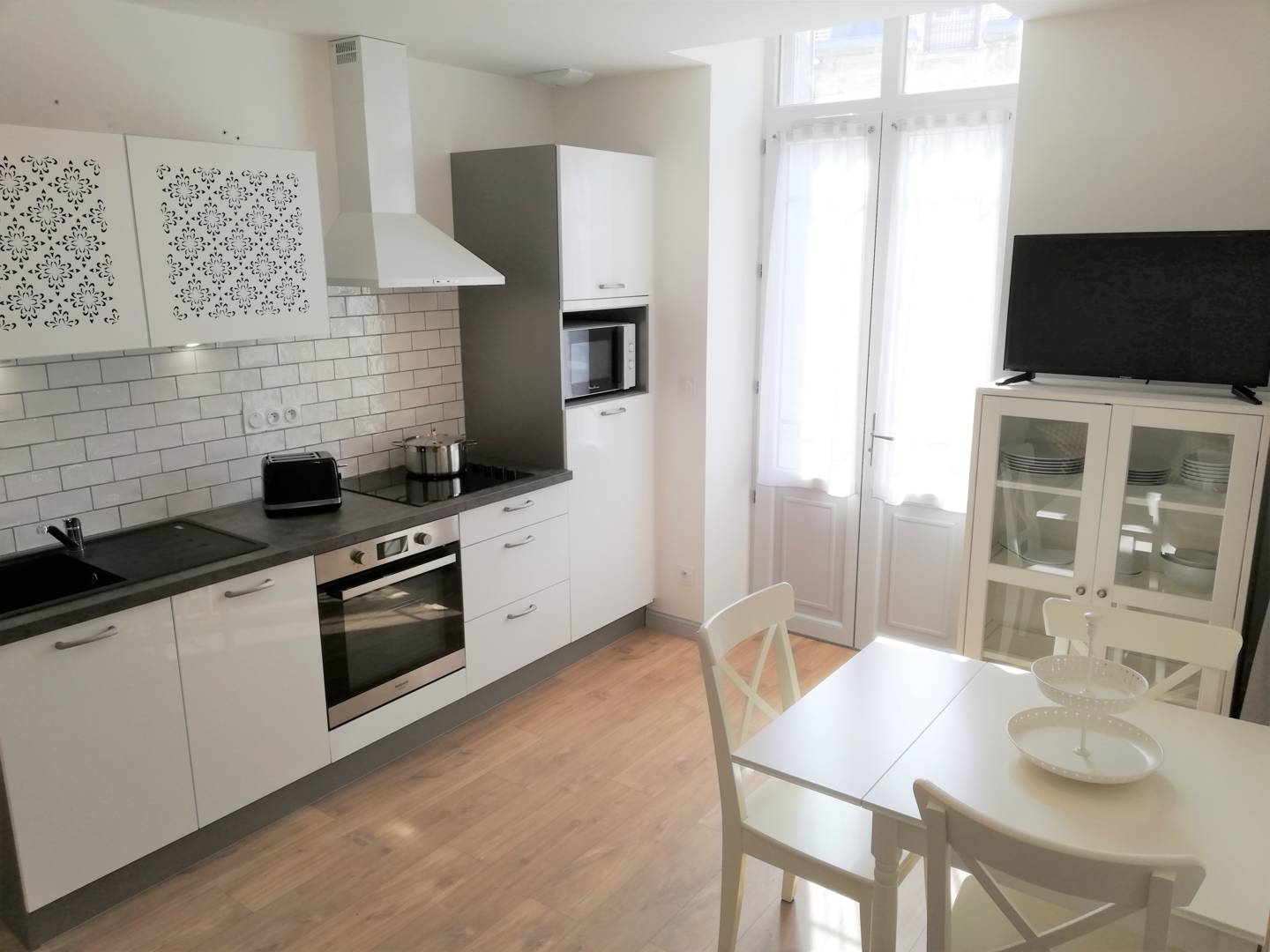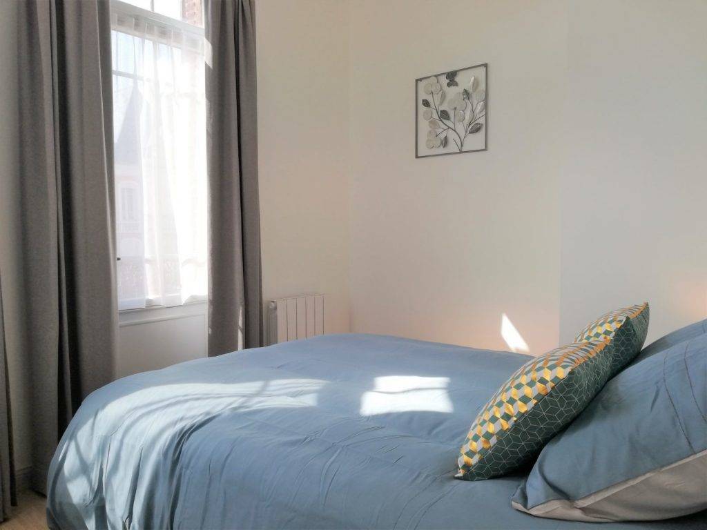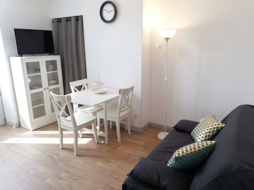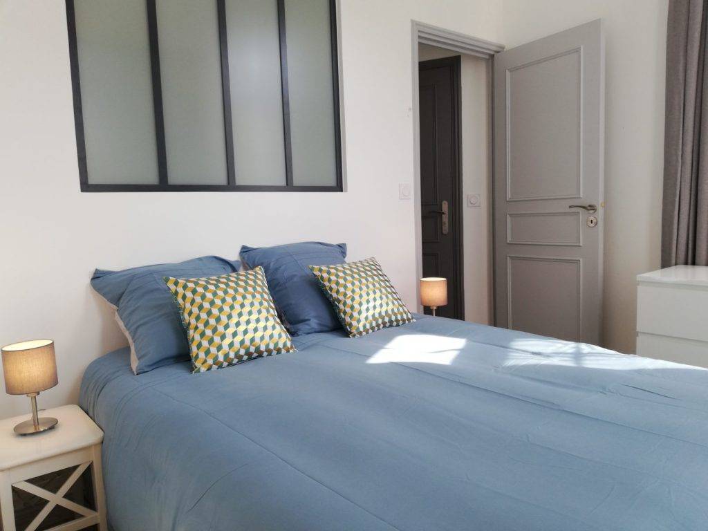Dans une ambiance calme et lumineuse, vous aurez le plaisir de découvrir sa chambre avec son grand lit double confortable (140×190) et de multiples rangements, sa cuisine toute équipée (congélateur, four, micro-onde, plaque vitro et lave-vaisselle), son séjour-salon doté d’un canapé convertible (140×190) et sa salle d’eau avec douche relaxation.(…)