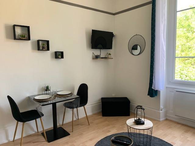 Studio dans résidence calme à 50m du parc thermal et 300m des thermes avec parking gratuit.