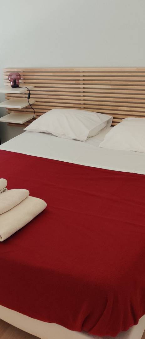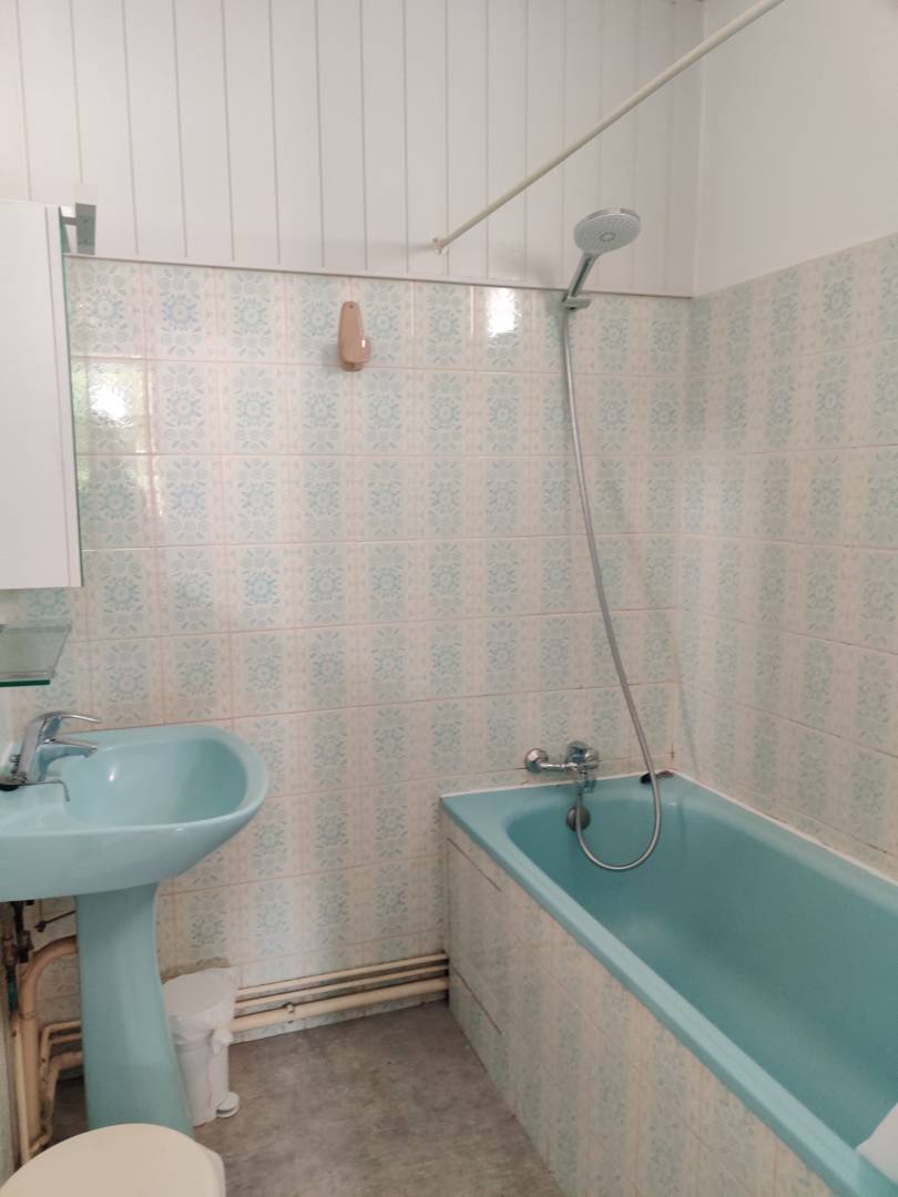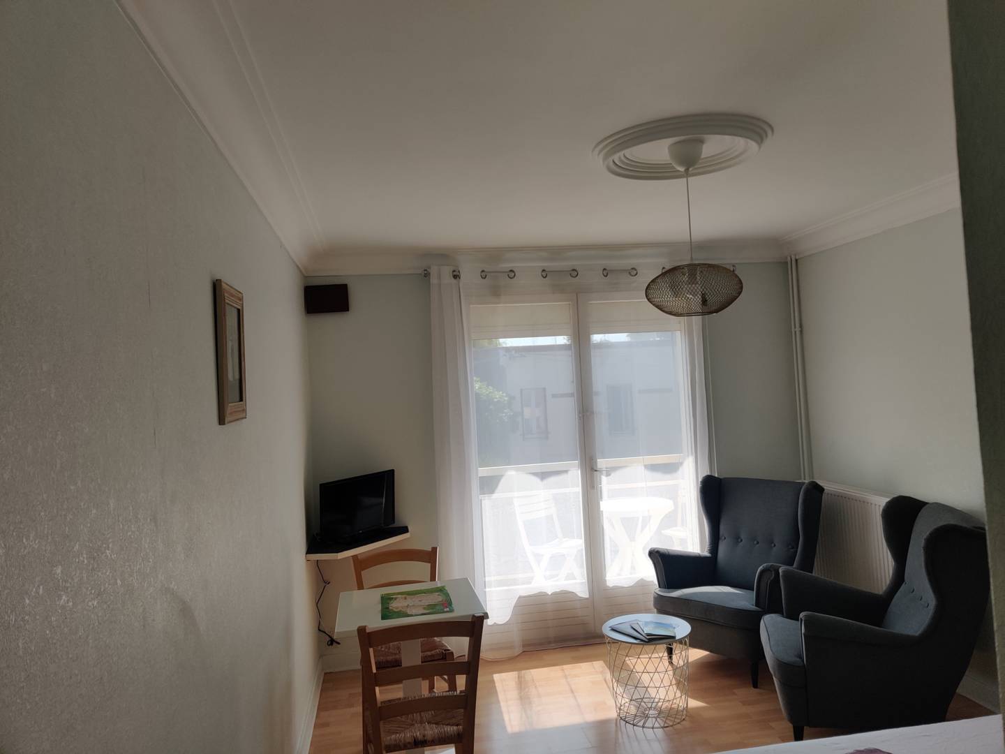 L’appartement n°14 est un studio situé au 1er étage. Il se compose de : – une pièce de vie avec 1 lit en 140, un coin salon avec TV et un coin repas, – une cuisine séparée équipée avec réfrigérateur, plaques, four, … et un coin repas – une salle de bain avec baignoire, – un wc séparé – un balcon avec salon de jardin et parasol