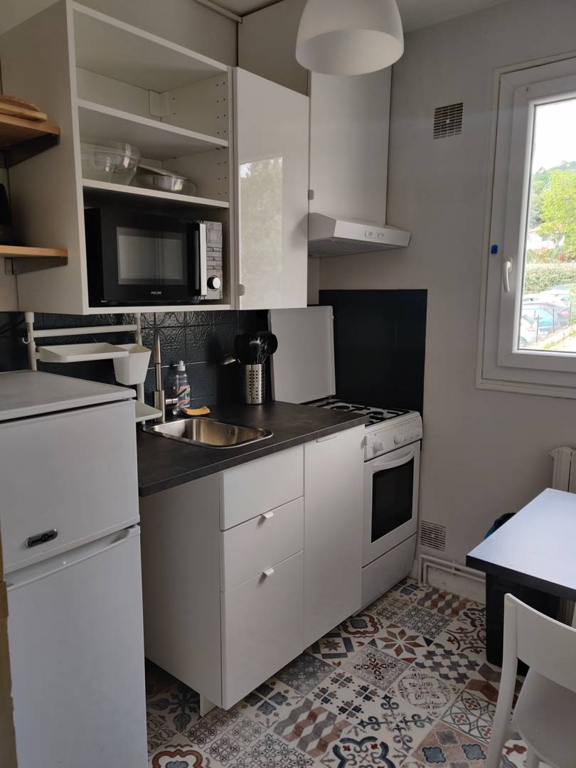 L’appartement n°14 est un studio situé au 1er étage. Il se compose de : – une pièce de vie avec 1 lit en 140, un coin salon avec TV et un coin repas, – une cuisine séparée équipée avec réfrigérateur, plaques, four, … et un coin repas – une salle(…)