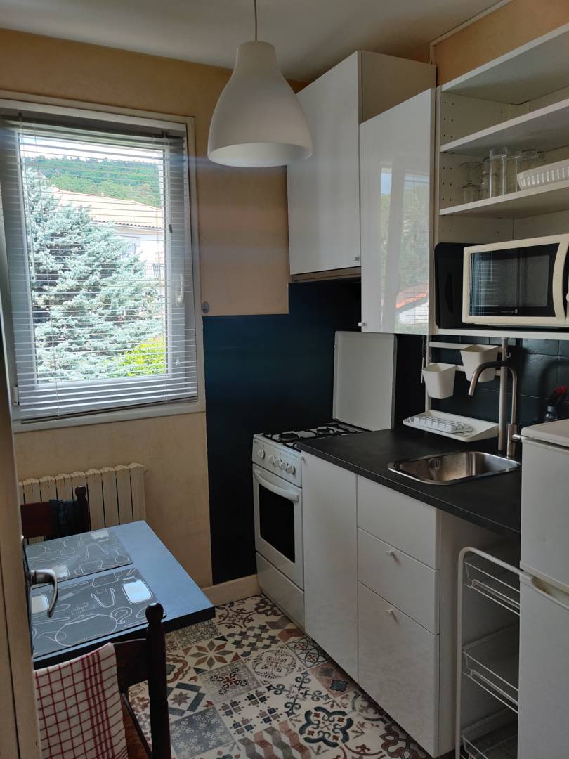 L’appartement n°21 est un studio situé au 2ème étage. Il se compose de : – une pièce de vie avec 2 lits en 90, un coin salon avec TV et un coin repas, – une cuisine séparée équipée avec réfrigérateur, plaques, four, … et un coin repas – une salle(…)