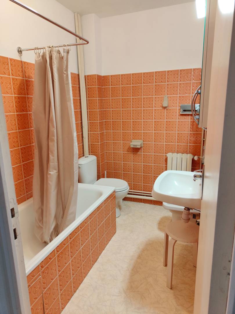 L’appartement n°22 est un studio au 1er étage, il se compose de : – une pièce de vie avec 1 lit en 140, un coin salon avec TV et un coin repas, – une kitchenette séparée équipée avec réfrigérateur, four, plaques, … – une salle de bain avec baignoire et WC – un balcon avec salon de jardin et parasol
